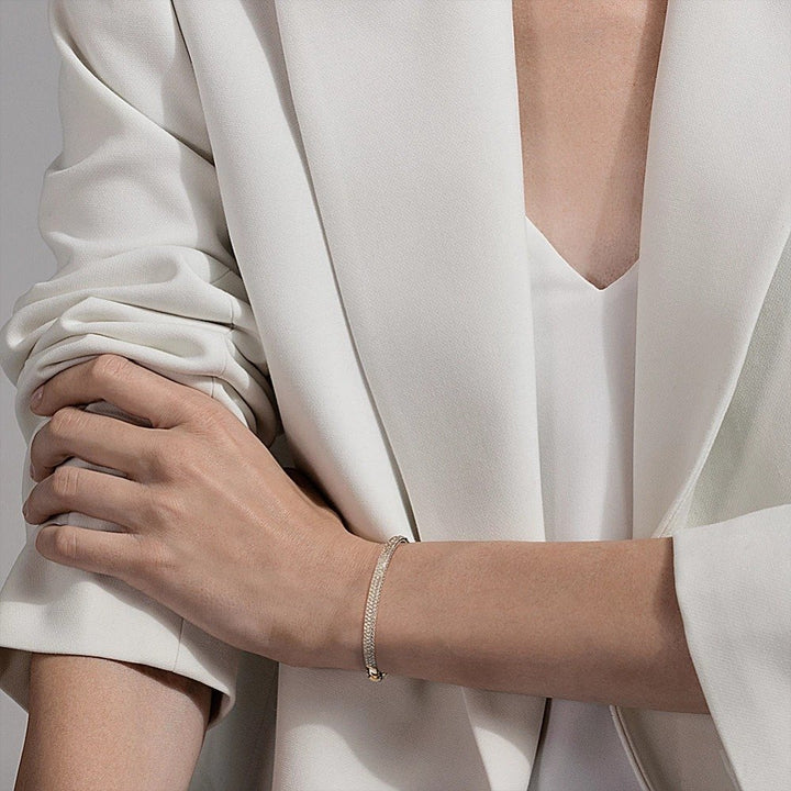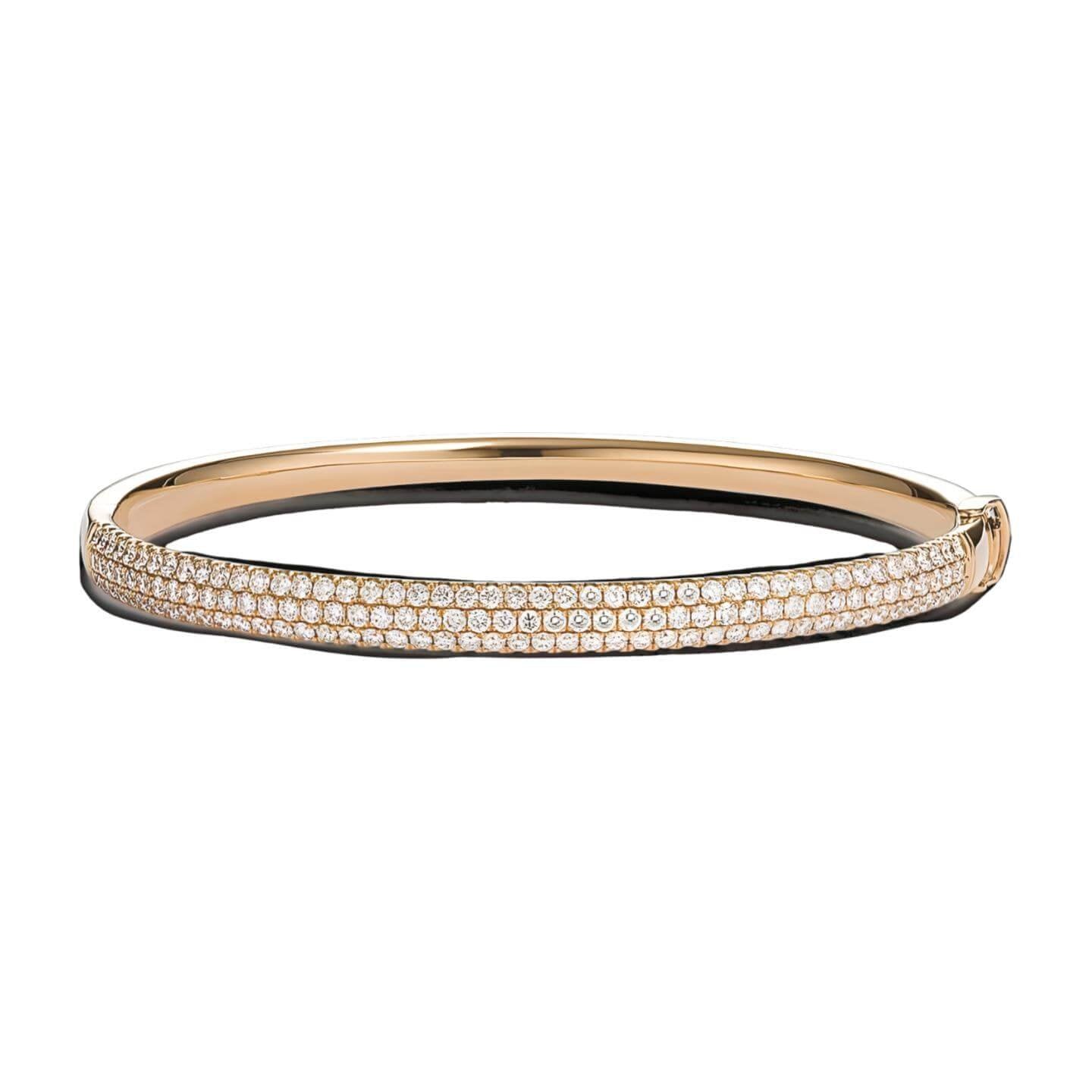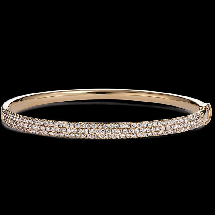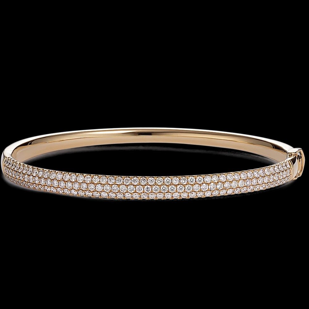 Since 1929, the Shane family have expertly crafted fine jewelry for life's most special moments. Tom Shane and his son, Rordan, uphold the legacy of being your friend in the jewelry business. The one you can trust to help you shine brighter every day. Rooted in quality craftsmanship and a fervent pursuit of the most beautiful gemstones, Shane Co. ensures your love story is in good hands. They are here for you for a lifetime, because they are in it for a lifetime. Let Shane Co. help you find jewelry that feels like you.Style notes: Add a touch of luxe to any look with this 3-row natural diamond bangle bracelet. Fully faceted micro diamonds are hand-matched for consistent color, clarity, and sparkle. Hypoallergenic 14k polished yellow gold is great for sensitive skin.Price: Please note price may vary due to exchange rate differences or shipping, duties and taxes. Price may also vary with materials choice. Final price is calculated at checkout at the designer's website. Materials: 14k yellow gold with 2.00ctw diamonds.Dimensions: 7 inches