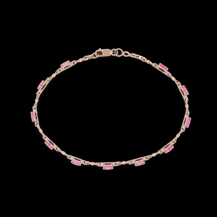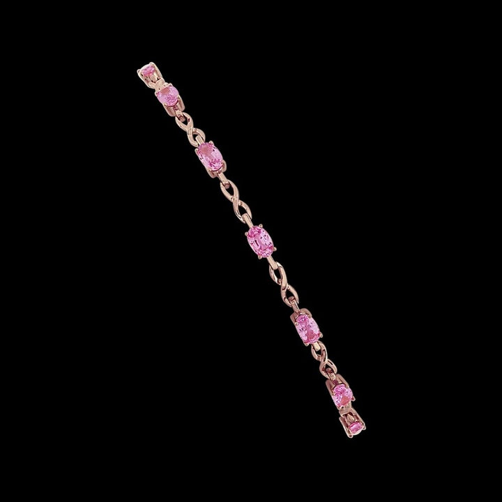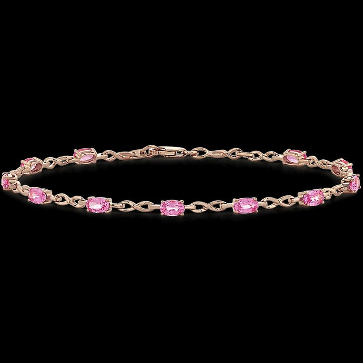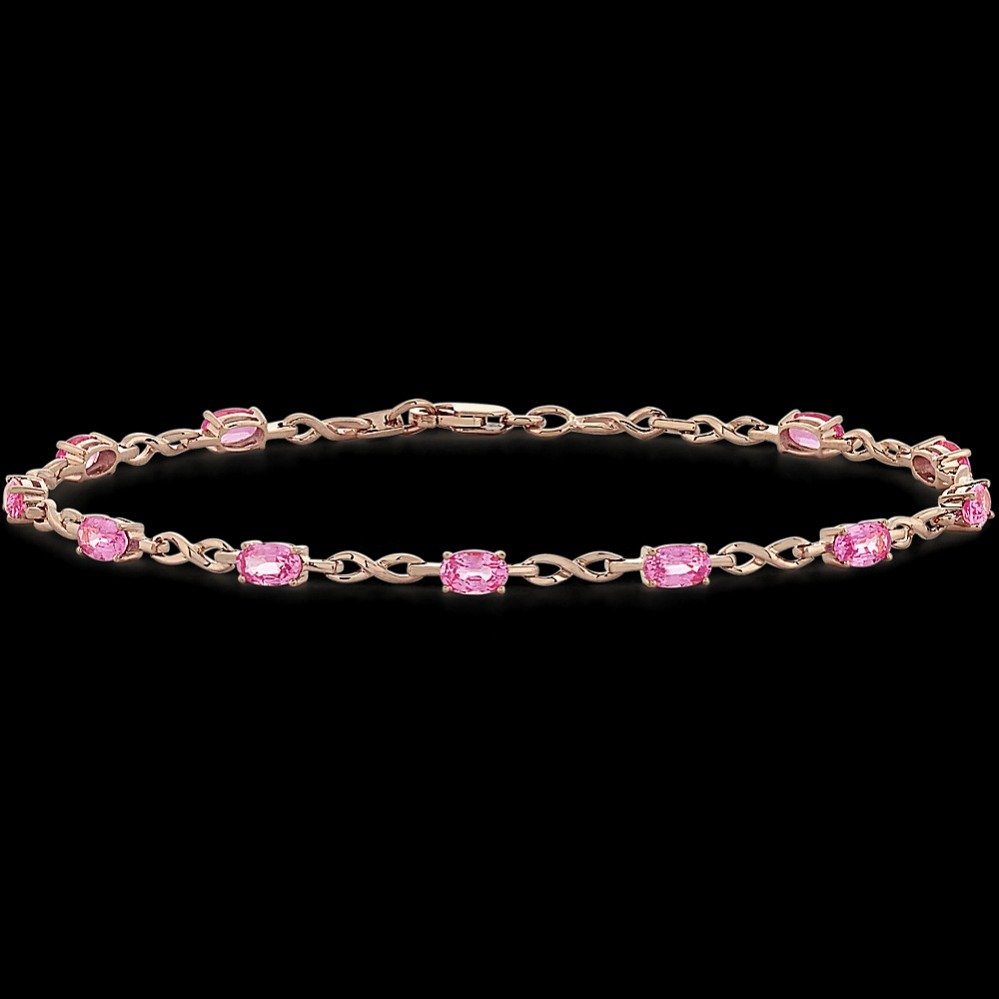 14k rose gold with 2.70ctw pink sapphires. Dimensions: 7.5 inches long