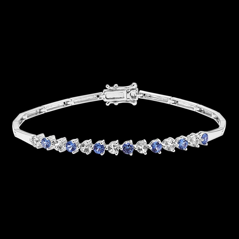 14k white gold with 0.85ctw blue sapphires and 0.80ctw diamonds.Dimensions: 7-inch length