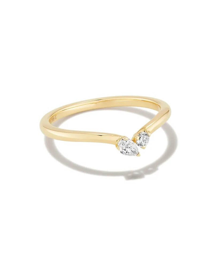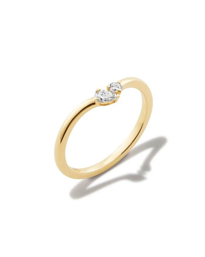 Kendra Scott is a renowned American designer and entrepreneur. Noticing she could never find affordable colored gemstone jewelry, Kendra set out to fill the gap in the market in 2002. With only $500, she began creating jewelry from her bedroom in Austin, Texas. It grew to an empire and today the Kendra Scott brand is celebrated globally for its distinctive designs, vibrant colors, and commitment to philanthropy.Style notes: Show your everlasting love with the Lab Grown White Diamond Toi et Moi Band Ring in 14k Yellow Gold. Pear-shaped and round lab grown diamonds are set alongside each other, embodying the French phrase this style is named after: you and me. This ring makes for a sentimental anniversary gift or a complimentary shadow band, and it's the perfect way to show your permanent plus one just how much you care.Price: Please note price may vary due to exchange rate differences or shipping, duties and taxes. Price may also vary with materials choice. Final price is calculated at checkout at the designer's website. Materials: 14k yellow gold with 0.16ctw white diamonds, quality H, VSDimensions: Size 0.20" W