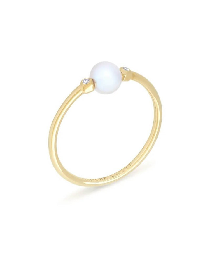 Kendra Scott is a renowned American designer and entrepreneur. Noticing she could never find affordable colored gemstone jewelry, Kendra set out to fill the gap in the market in 2002. With only $500, she began creating jewelry from her bedroom in Austin, Texas. It grew to an empire and today the Kendra Scott brand is celebrated globally for its distinctive designs, vibrant colors, and commitment to philanthropy.Style notes: The Cathleen 14k Yellow Gold Band Ring in Pearl is stunningly simple, and a staple piece for any wardrobe. This 14k Yellow Gold band ring features one of our pearls on an understated setting with two petite diamonds that complete the look. The Cathleen 14k Yellow Gold Band Ring is a piece that will live happily in your collection forever.Price: Please note price may vary due to exchange rate differences or shipping, duties and taxes. Price may also vary with materials choice. Final price is calculated at checkout at the designer's website. Materials: 14k yellow gold with pearl and 0.008ctw white brilliant diamonds, quality H SI Dimensions: Size- 5mm Pearl, band width Top- 5mm, Bottom- 1.2mm