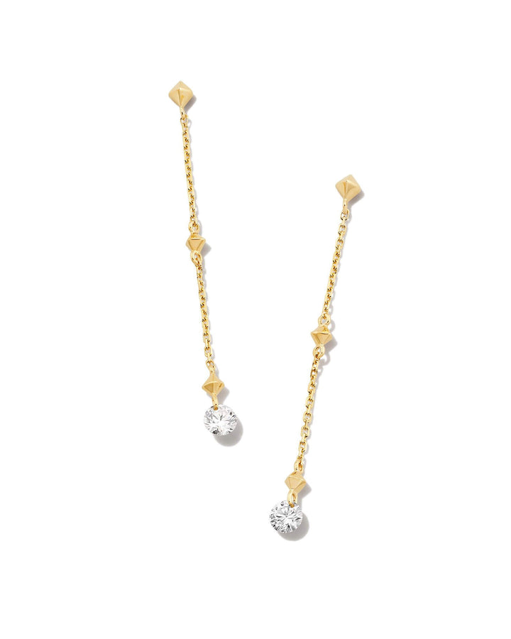 Kendra Scott is a renowned American designer and entrepreneur. Noticing she could never find affordable colored gemstone jewelry, Kendra set out to fill the gap in the market in 2002. With only $500, she began creating jewelry from her bedroom in Austin, Texas. It grew to an empire and today the Kendra Scott brand is celebrated globally for its distinctive designs, vibrant colors, and commitment to philanthropy.Style notes: Meet the delicate drop earrings you can wear for a lifetime: the Floating Lab Grown White Diamond Linear Earrings in 14k Yellow Gold. Heirloom-quality gold and lab grown diamonds meet beautifully in this contemporary linear style earring, meant to be loved now and for generations to come.Price: Please note price may vary due to exchange rate differences or shipping, duties and taxes. Price may also vary with materials choice. Final price is calculated at checkout at the designer's website. Materials: 14k yellow gold with 0.2ctw white lab diamonds, quality H, VSDimensions: Size- 1.24"Lx 0.17"W