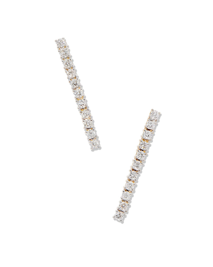 Kendra Scott is a renowned American designer and entrepreneur. Noticing she could never find affordable colored gemstone jewelry, Kendra set out to fill the gap in the market in 2002. With only $500, she began creating jewelry from her bedroom in Austin, Texas. It grew to an empire and today the Kendra Scott brand is celebrated globally for its distinctive designs, vibrant colors, and commitment to philanthropy.Style notes: With their diamonds, drop design, and dramatic flair, the Tennis 14k Yellow Gold Linear Earrings in White Diamond are truly unforgettable. Featuring a linear arrangement of diamonds, these earrings have tons of movement and radiate an undeniable sparkle. Price: Please note price may vary due to exchange rate differences or shipping, duties and taxes. Price may also vary with materials choice. Final price is calculated at checkout at the designer's website. Materials: 14k yellow gold with 0.35ctw white diamonds, quality H, SIDimensions: Size- 0.787'L