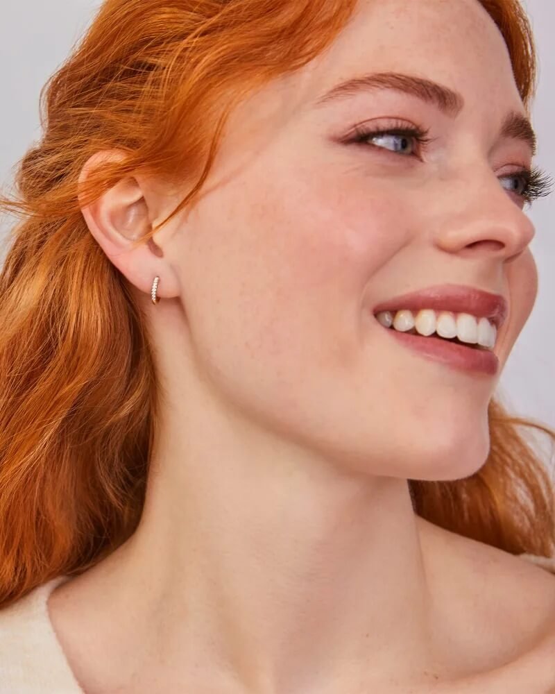 Kendra Scott is a renowned American designer and entrepreneur. Noticing she could never find affordable colored gemstone jewelry, Kendra set out to fill the gap in the market in 2002. With only $500, she began creating jewelry from her bedroom in Austin, Texas. It grew to an empire and today the Kendra Scott brand is celebrated globally for its distinctive designs, vibrant colors, and commitment to philanthropy.Style notes: Heirloom both in quality and style, the Mila 14k Yellow Gold Huggie Earrings in White Diamond will be a timeless addition to your wardrobe. Each diamond is hand selected and placed, bringing the sparkle to your everyday look and occasional outfits alike.Price: Please note price may vary due to exchange rate differences or shipping, duties and taxes. Price may also vary with materials choice. Final price is calculated at checkout at the designer's website. Materials: 14k yellow gold with 0.074ctw white diamonds, quality H, SIDimensions: Size- 0.42" outer diameter