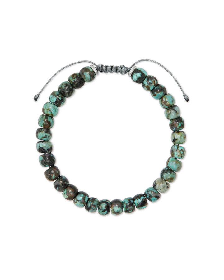 Durable cording and one-of-a-kind stones create the polished design of the Cade Oxidized Sterling Silver Corded Bracelet in Tuquoise Jasper. Complete with adjustable closure to easily create the perfect fit, this bracelet is designed with low maintenance Sterling Silver for everyday wear.