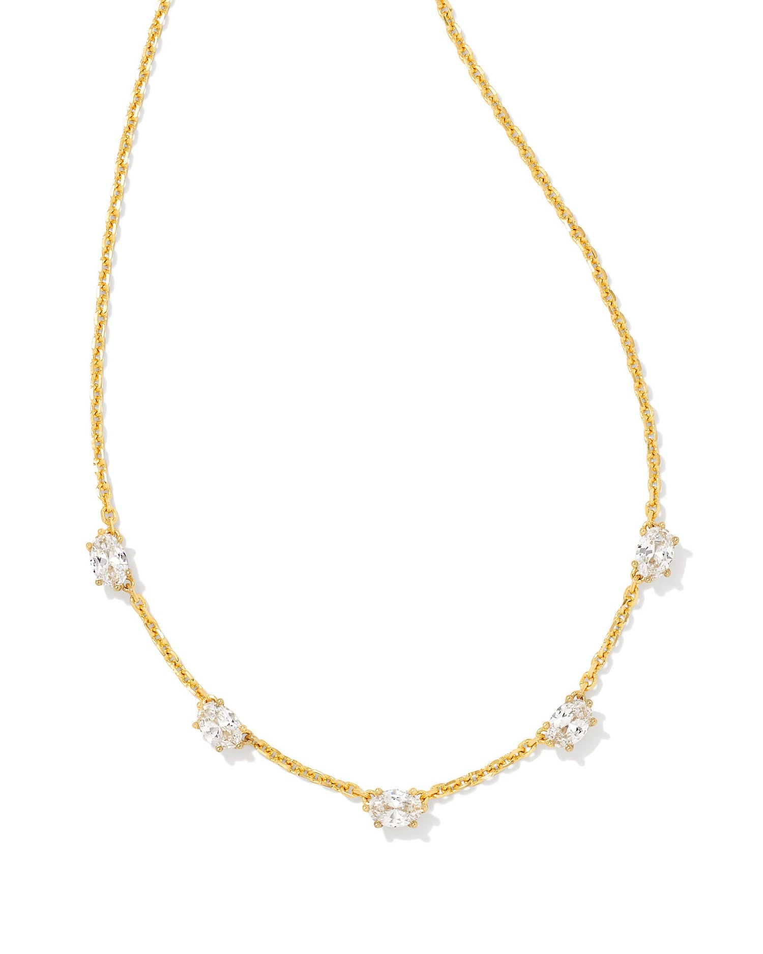 A delicate and elegant choker you wont want to take off. The Cailin Gold Crystal Strand Necklace in White Crystal is minimal enough to layer with other chains and charms, yet its sparkling gem additions also make this piece easy to style on its own.
