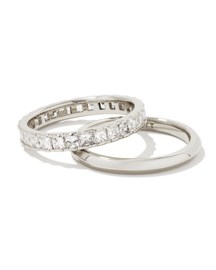 Double up on sparkle with the Ella Silver Ring Set of 2 in White Crystal. A gorgeous crystal-studded ring is paired with a timeless band to make the perfect base for your stacked ring look. Style with other silver pieces or mix it up with goldeither way, this set is bound to become a staple.