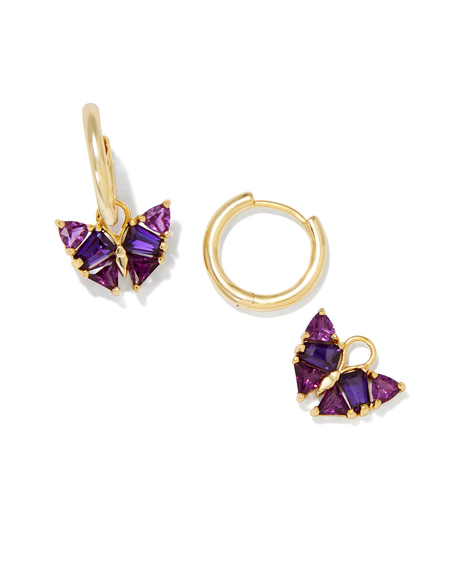Huggies, butterflies, and sparkling stonescan it get any cuter? We think not. Dainty and adorable, the Blair Gold Butterfly Huggie Earrings in Purple Mix will be the sweetest style in your ear stack. Plus, the butterfly charms are removable, meaning you can add them for more shine or remove them for a more lowkey look.