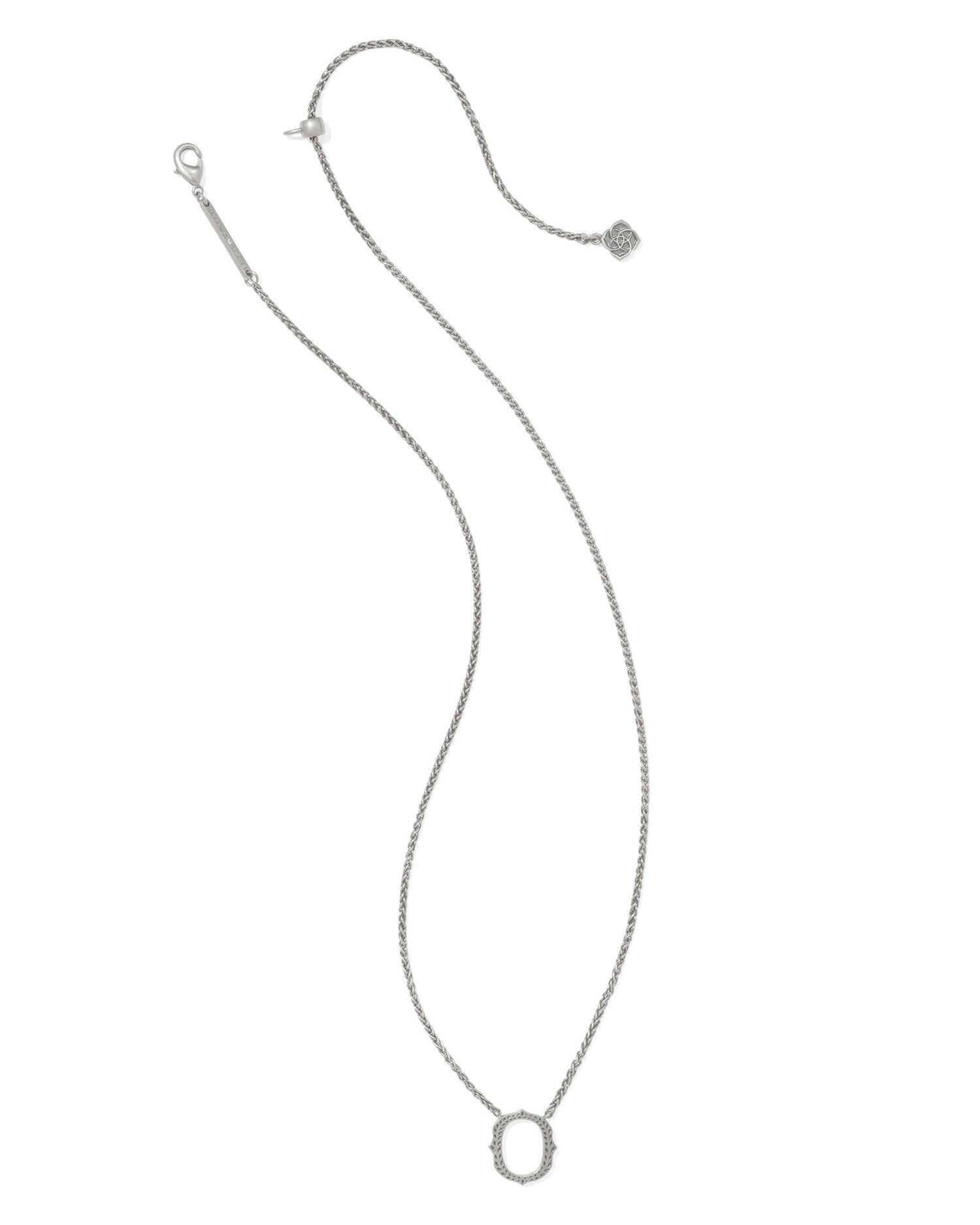 The beloved letter necklace style meets the charm of the Lone Star State in the Beau Letter O Pendant Necklace in Vintage Silver. Crafted in vintage-inspired metal, this pendants etched script is a play on our signature hoofprint detailing. Whether youre showing off your initials or someone elses, this style will be hard to ignore. This necklace is a part of Yellow Rose by Kendra Scotta brand that celebrates ranch life with Kendra Scott staples alongside select curated jewelry pieces and accessories.