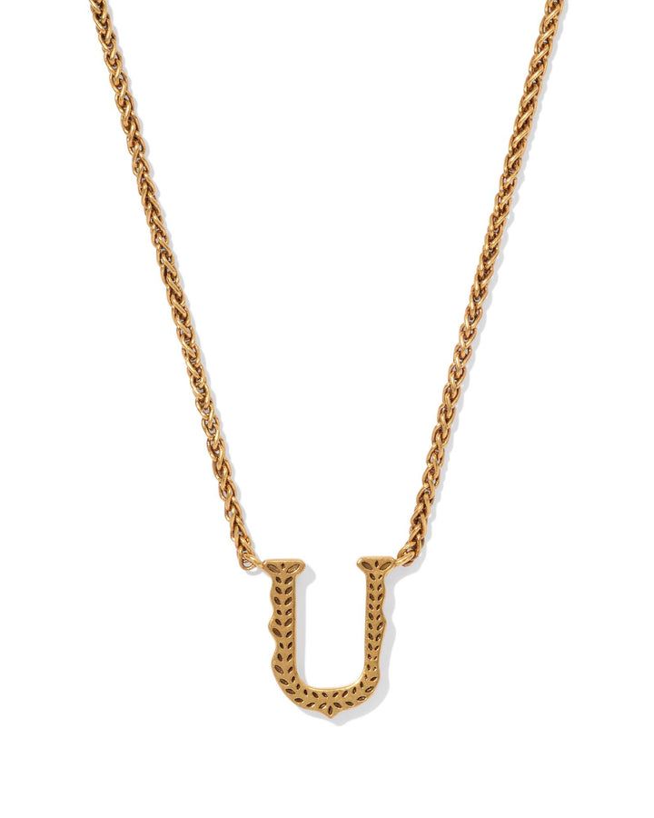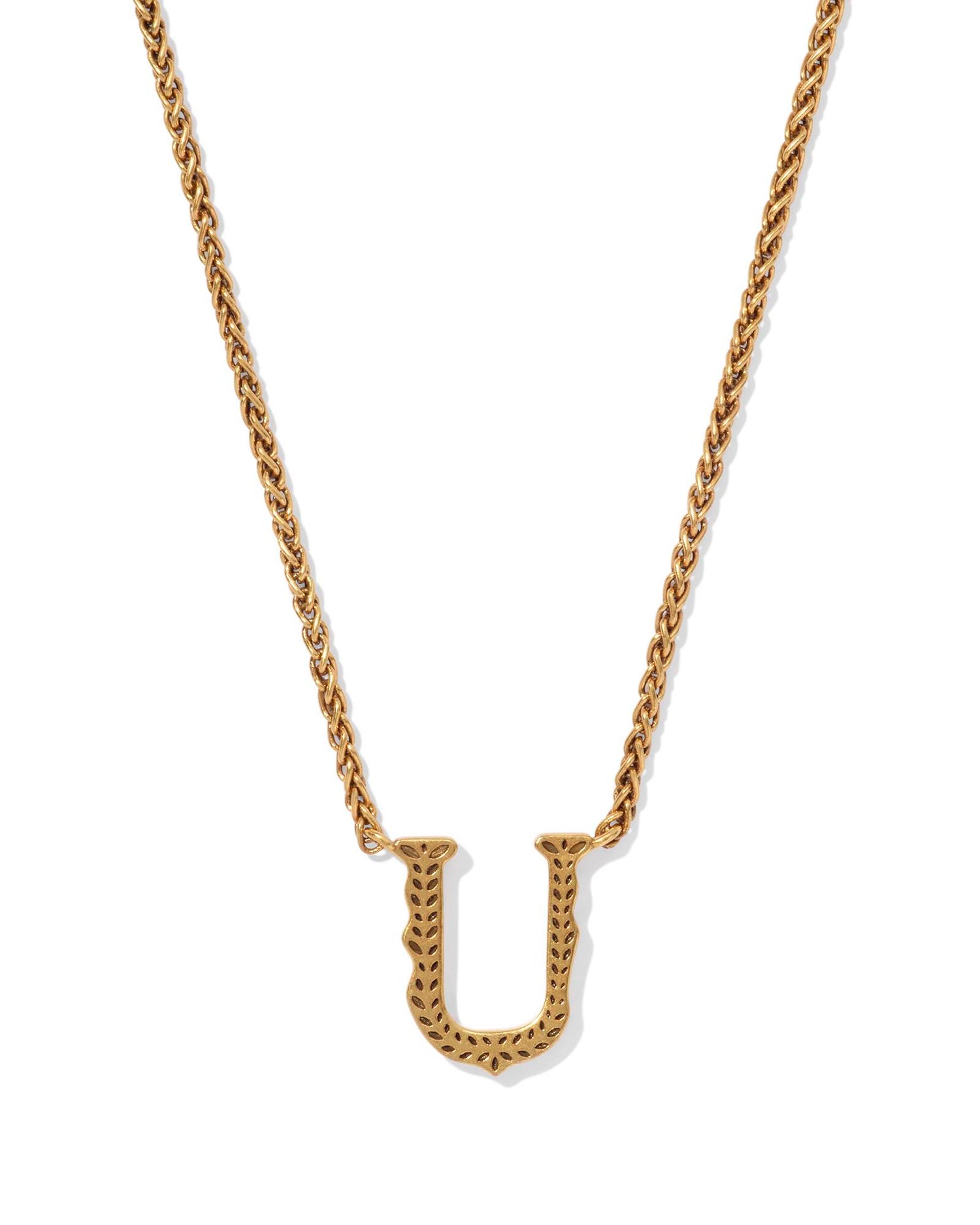 The beloved letter necklace style meets the charm of the Lone Star State in the Beau Letter U Pendant Necklace in Vintage Gold. Crafted in vintage-inspired metal, this pendants etched script is a play on our signature hoofprint detailing. Whether youre showing off your initials or someone elses, this style will be hard to ignore. This necklace is a part of Yellow Rose by Kendra Scotta brand that celebrates ranch life with Kendra Scott staples alongside select curated jewelry pieces and accessories.
