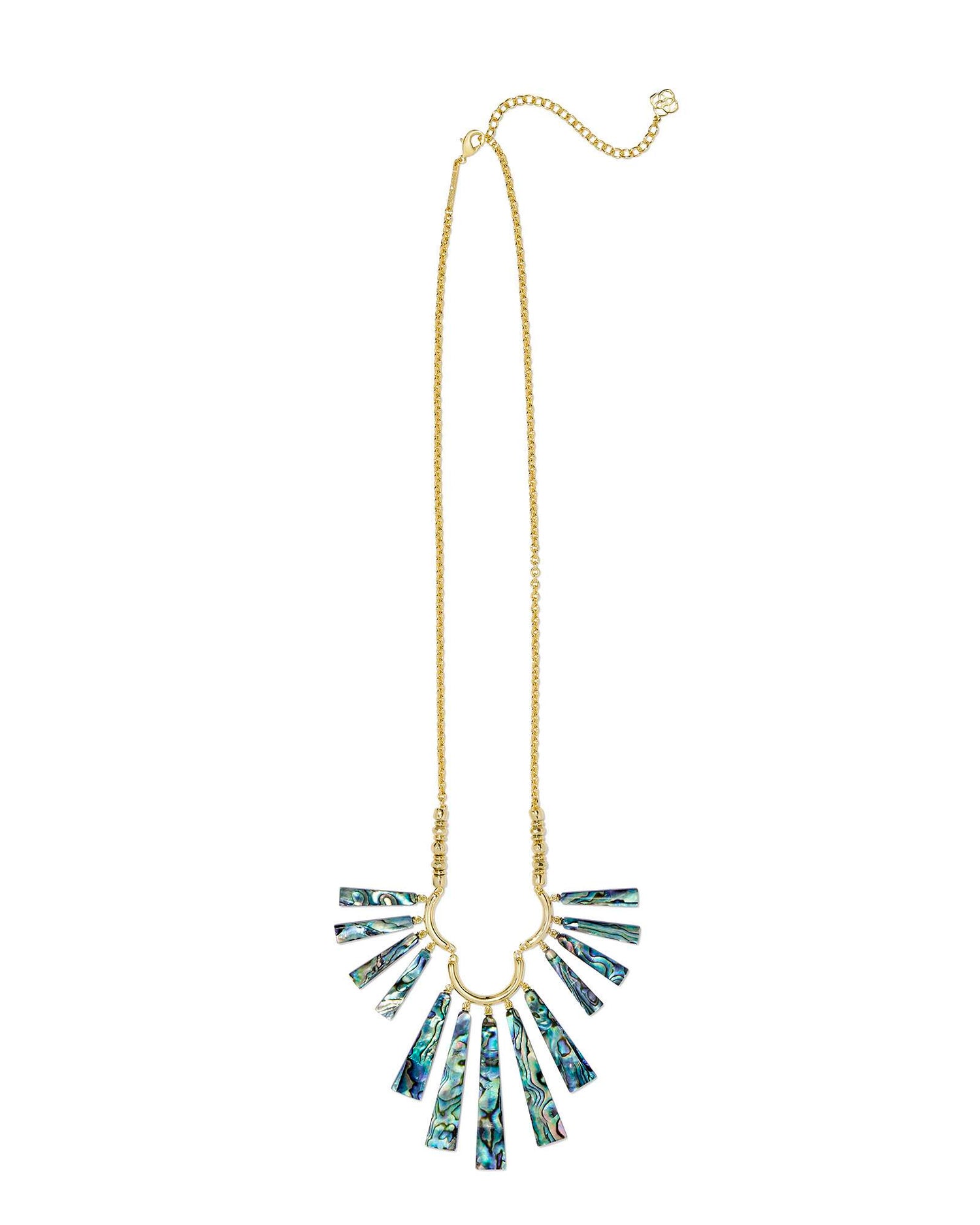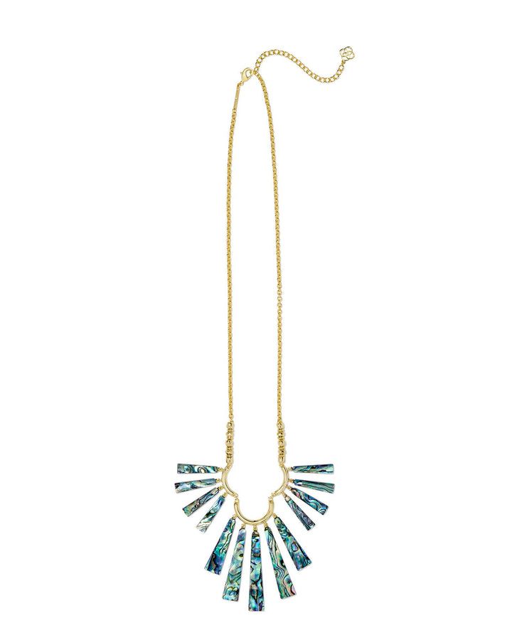 Wow everyone when you wear the Layton Gold Long Statement Necklace in Abalone Shella vacay-ready statement featuring a fringe of one-of-a-kind, linear shells. With its natural textures and eye-catching colors, this stunner is perfect for a relaxing dinner or a fun night on the town.