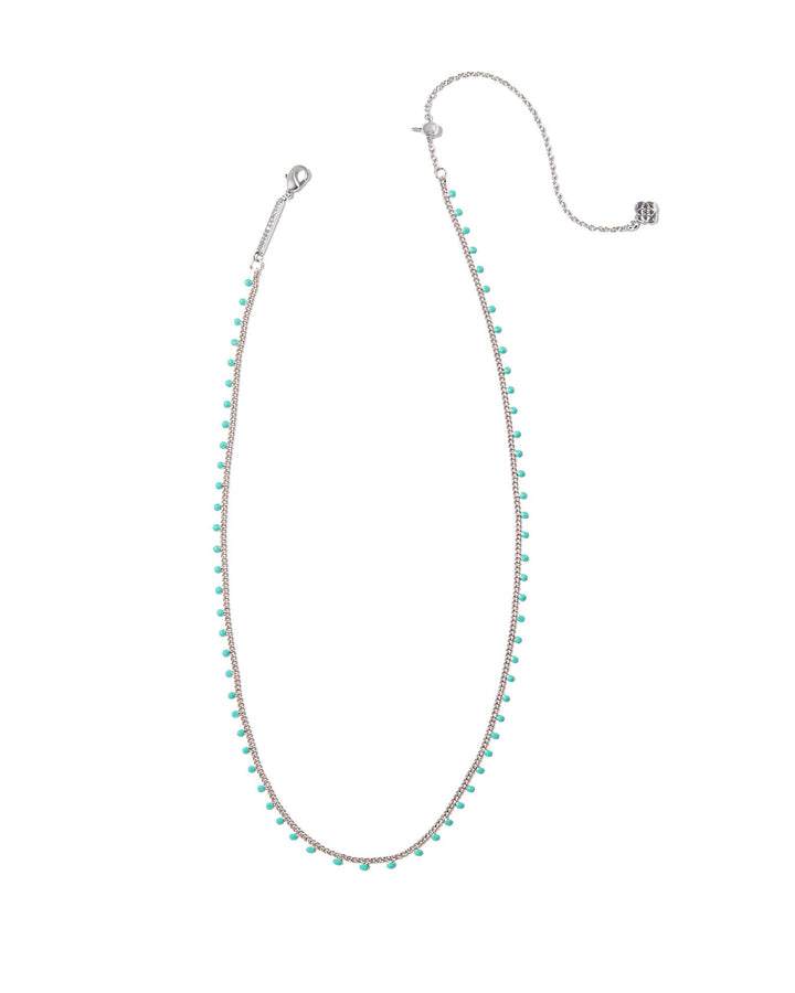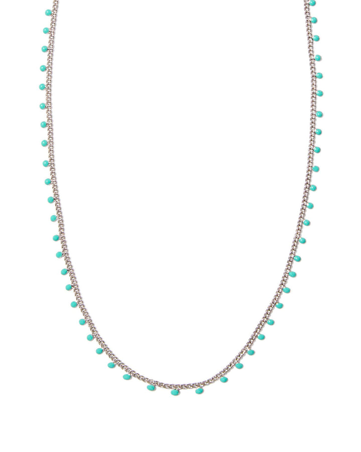 Theres truly no better way to top off your look than with a pop of color. Complete with dainty enamel embellishments, the Kelsey Silver Strand Necklace in Turquoise Enamel is the vibrant yet minimal accessory your layers will love.