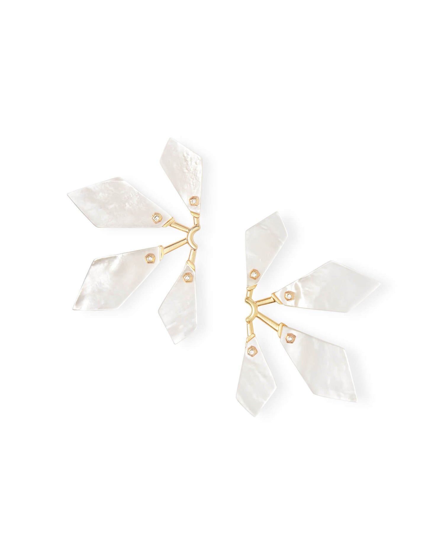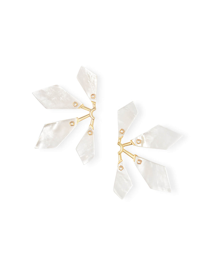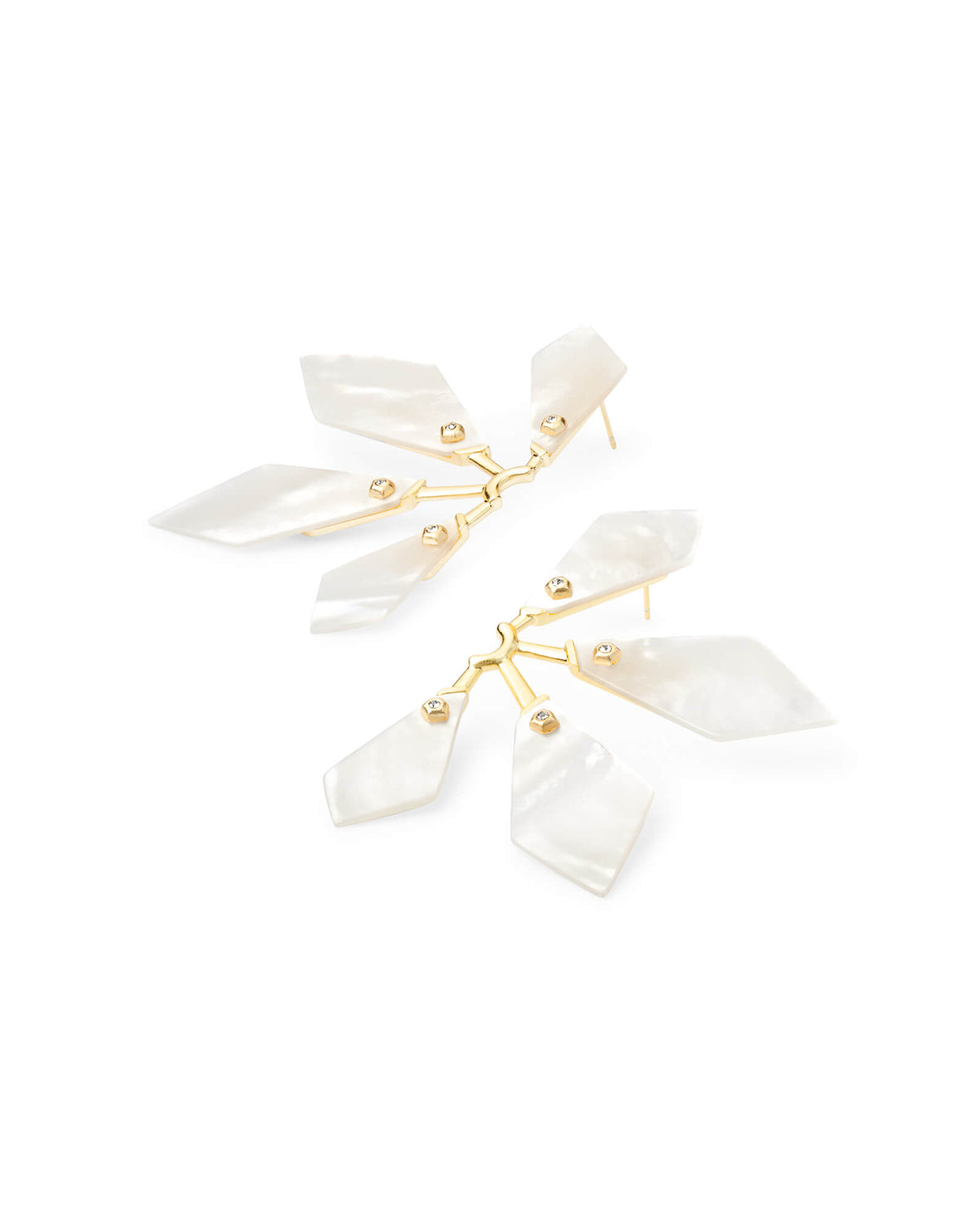 Bold and beautiful, the Malika Gold Statement Earrings in Ivory Mother-of-Pearl are made to show off. Featuring an abstract petal shape fanned out with subtle crystal accents, these statement earrings will bring all the botanical vibes to your wardrobe and instantly dress up any look.