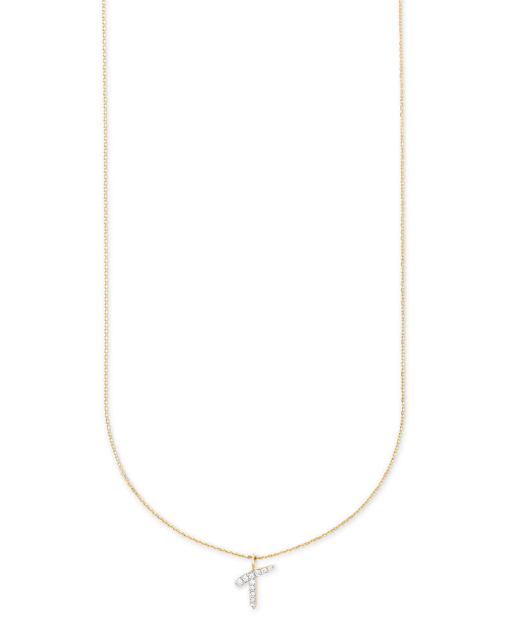Diamond Letter T Pendant Necklace in 14k Yellow Gold