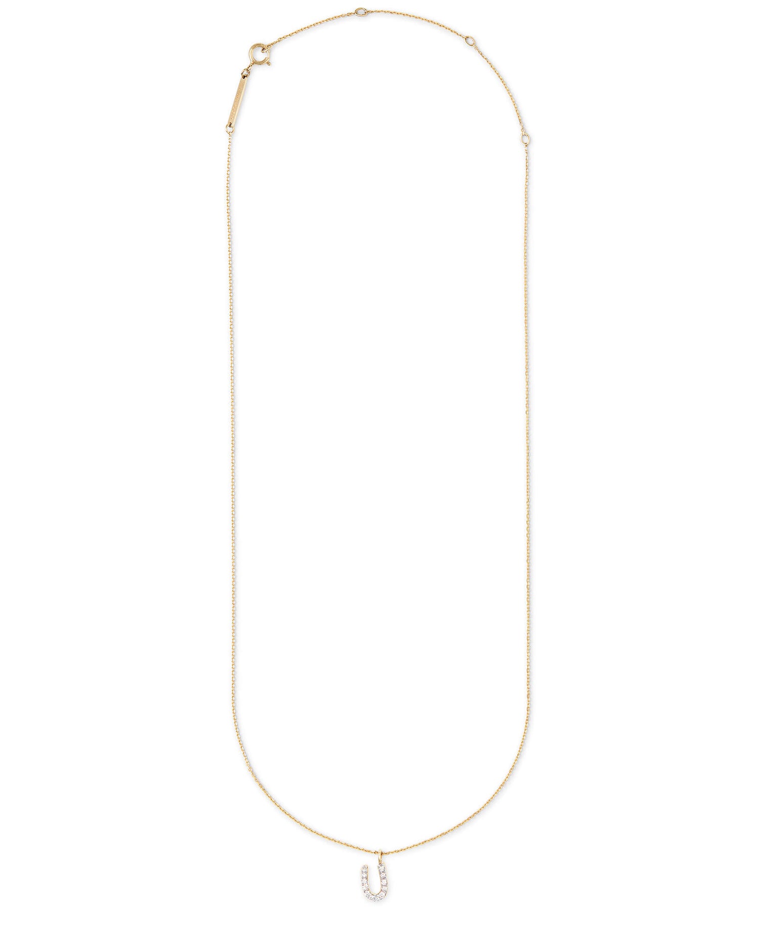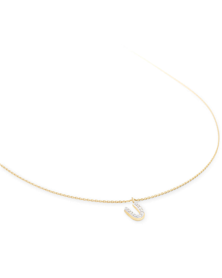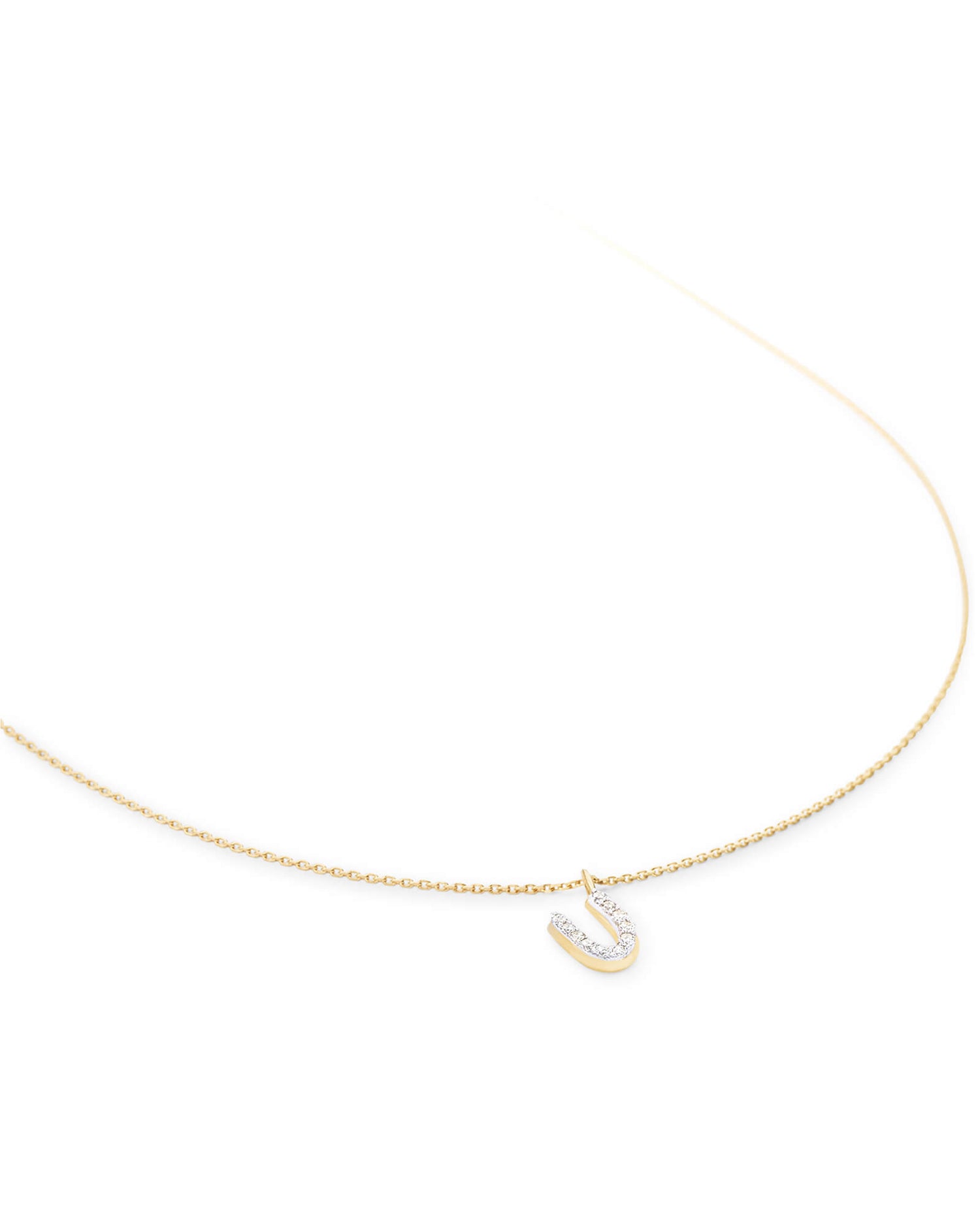 Diamond Letter U Pendant Necklace in 14k Yellow Gold