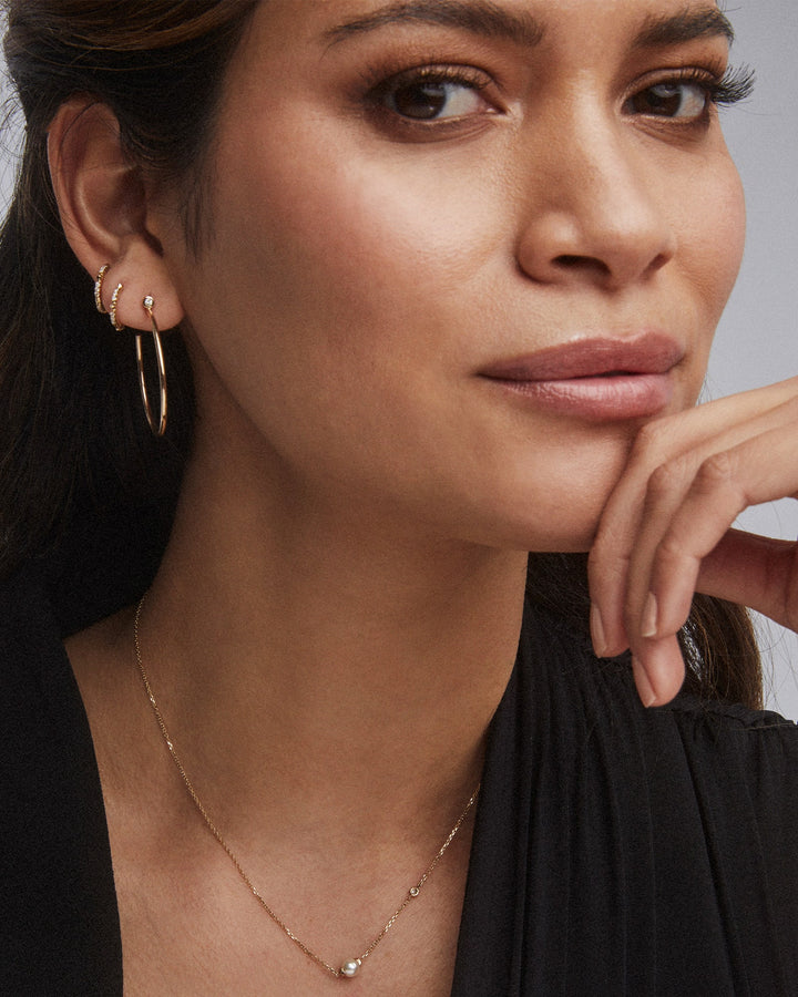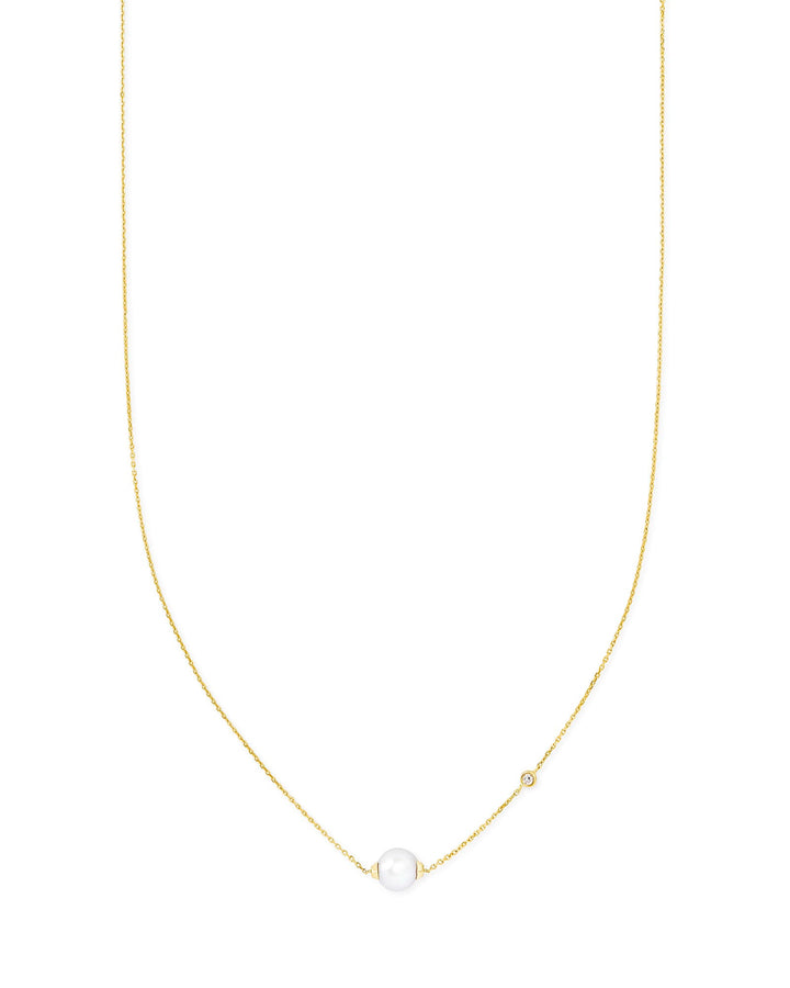 The Cathleen 14k Gold Pendant Necklace in Pearl is our take on an undisputable classic. With its shining pearl and asymmetrical diamond detail, this 14k Yellow Gold pendant necklace is simple yet eye catching. The Cathleen 14k Gold Pendant Necklace is easy to pair with any and every look, making it an everyday staple you can't refuse. Our diamonds are conflict-free in compliance with the Kimberley Process.