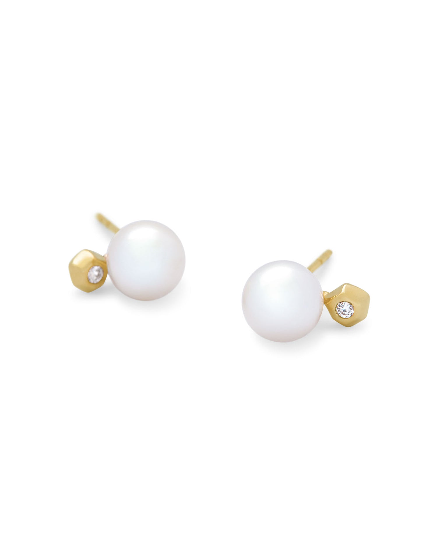 The Cathleen 14k Yellow Gold Stud Earrings bring together two classics - pearls and diamonds - in a modern silhouette. These 14k Yellow Gold stud earrings are simple, yet make an impression. A staple that will never go out of style, the Cathleen 14k Yellow Gold Stud Earrings are perfect for any and every occasion. Our diamonds are conflict-free in compliance with the Kimberley Process.
