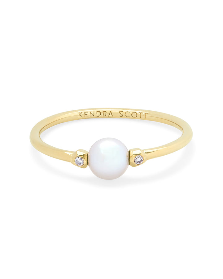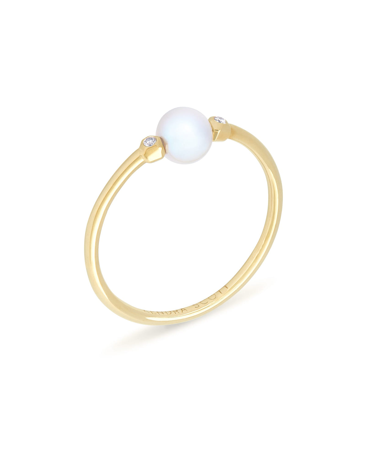 The Cathleen 14k Yellow Gold Band Ring in Pearl is stunningly simple, and a staple piece for any wardrobe. This 14k Yellow Gold band ring features one of our pearls on an understated setting with two petite diamonds that complete the look. The Cathleen 14k Yellow Gold Band Ring is a piece that will live happily in your collection forever. Our diamonds are conflict-free in compliance with the Kimberley Process.