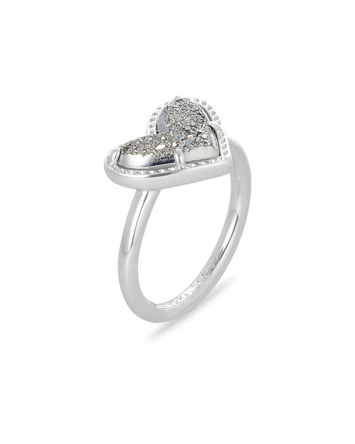What's not to love about the Ari Heart Silver Band Ring in Platinum Drusy, defined by an asymmetrical design of one of the world's most iconic symbols?