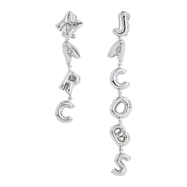 Marc Jacobs is one of the most influential American fashion designers, known for his fearless approach to design and ability to blend high fashion with street style. From his tenure as creative director of Louis Vuitton to growing his eponymous brand into an empire and winning multiple CFDA Womenswear Designer of the Year awards, Jacobs holds many a feather in his cap. One of the defining characteristics of his brand is capturing the spirit of the moment while setting trends for the future.Style notes: A new Marc Jacobs icon. These asymmetrical drop earrings play up the puffed up proportions of the season with a mylar balloon-inspired design.Price: Please note price may vary due to exchange rate differences or shipping, duties and taxes. Price may also vary with materials choice. Final price is calculated at checkout at the designer's website. Materials: Silver-plated brassDimensions: Marc: 62mm long. Jacobs: 89mm long. Letters: 10-12mm