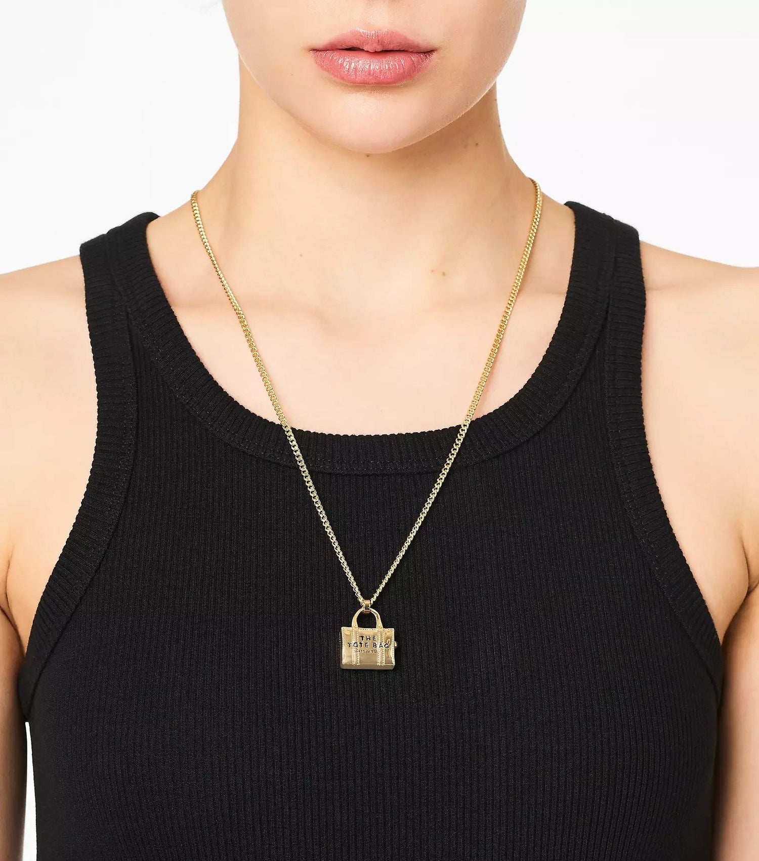 Marc Jacobs is one of the most influential American fashion designers, known for his fearless approach to design and ability to blend high fashion with street style. From his tenure as creative director of Louis Vuitton to growing his eponymous brand into an empire and winning multiple CFDA Womenswear Designer of the Year awards, Jacobs holds many a feather in his cap. One of the defining characteristics of his brand is capturing the spirit of the moment while setting trends for the future.Style notes: The ultimate Marc twist on everyday accessorizing. One of our most recognizable styles, the iconic tote bag, is reimagined into a novelty necklace.Price: Please note price may vary due to exchange rate differences or shipping, duties and taxes. Price may also vary with materials choice. Final price is calculated at checkout at the designer's website. Materials: Gold-plated brassDimensions: Shorter length: 60 cm, Longer length: 65 cm. Pendant: 20mm wide