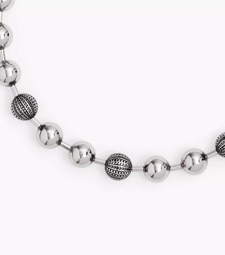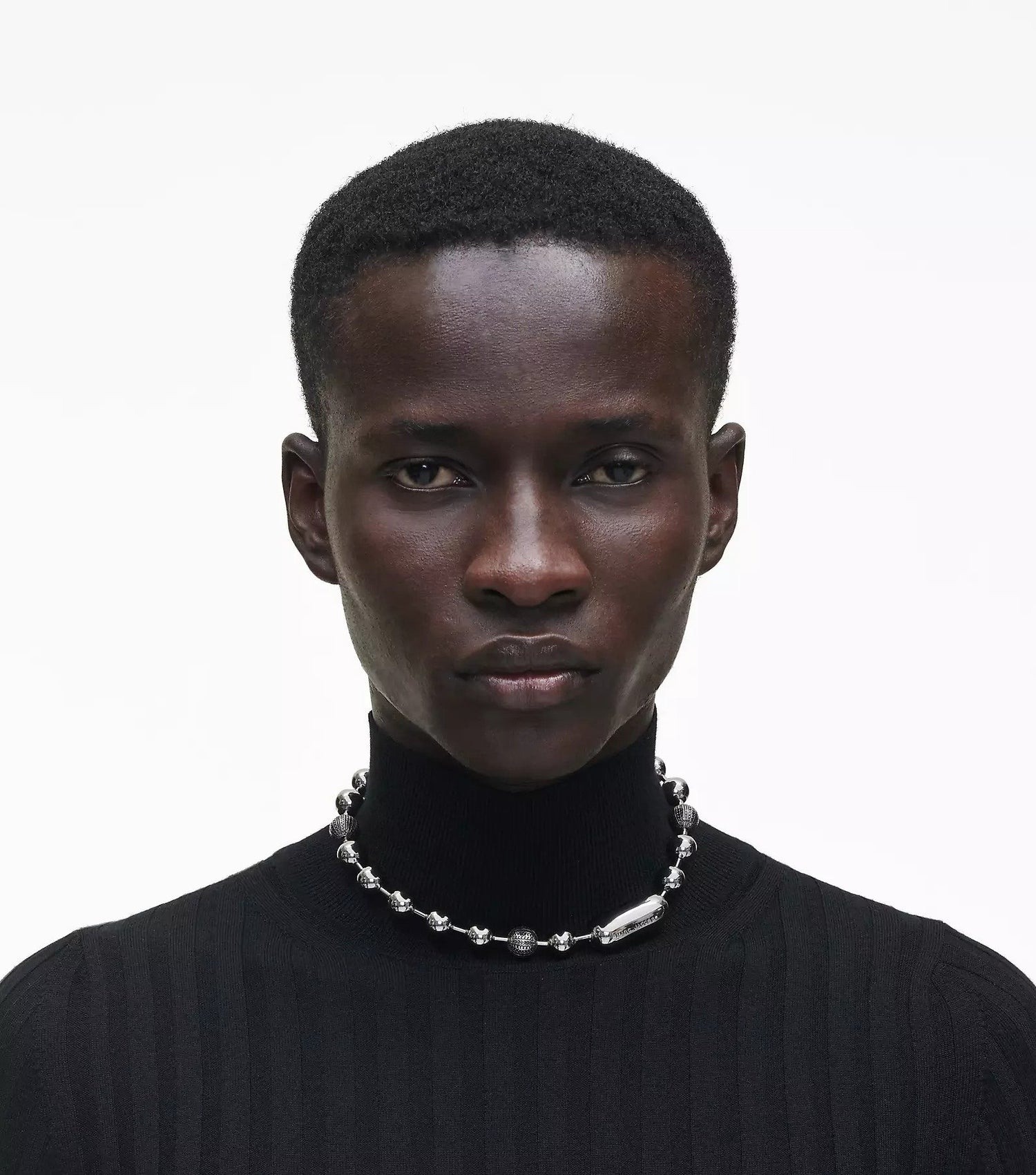 Marc Jacobs is one of the most influential American fashion designers, known for his fearless approach to design and ability to blend high fashion with street style. From his tenure as creative director of Louis Vuitton to growing his eponymous brand into an empire and winning multiple CFDA Womenswear Designer of the Year awards, Jacobs holds many a feather in his cap. One of the defining characteristics of his brand is capturing the spirit of the moment while setting trends for the future.Style notes: Utilitarian design with a Marc spin. This piece is inspired by classic ball chains and reimagined into a striking necklace with monogram-engraved alternating beads.Price: Please note price may vary due to exchange rate differences or shipping, duties and taxes. Price may also vary with materials choice. Final price is calculated at checkout at the designer's website. Materials: Silver-plated brassDimensions: 40cm long, 12mm round beads