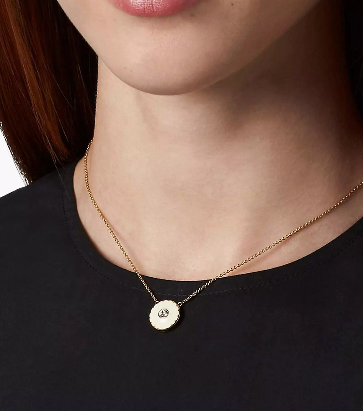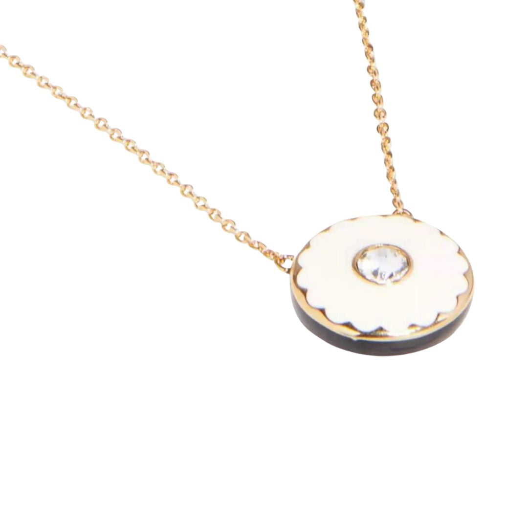 Marc Jacobs is one of the most influential American fashion designers, known for his fearless approach to design and ability to blend high fashion with street style. From his tenure as creative director of Louis Vuitton to growing his eponymous brand into an empire and winning multiple CFDA Womenswear Designer of the Year awards, Jacobs holds many a feather in his cap. One of the defining characteristics of his brand is capturing the spirit of the moment while setting trends for the future.Style notes: Plated necklace featuring our iconic enamel medallion in striking color combinations. Each medallion is reversible, showcasing our signature logo on one side and a scalloped edge-surrounded crystal on the other.Price: Please note price may vary due to exchange rate differences or shipping, duties and taxes. Price may also vary with materials choice. Final price is calculated at checkout at the designer's website.Materials: Plated brass, epoxy, cubic zirconia, and preciosa crystalDimensions: 16 in l + 1in extender. 41cm l + 2.5cm extender. .5in (14mm) pendant diameter