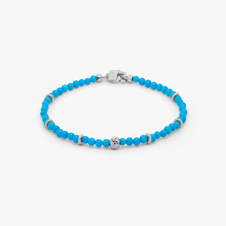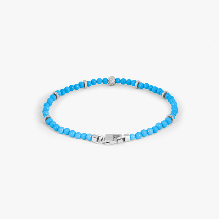 Nodo Beaded Bracelet In Rhodium Plated Silver With Sleeping Beauty Turquoise