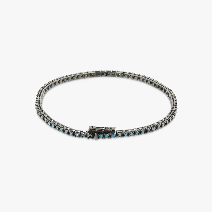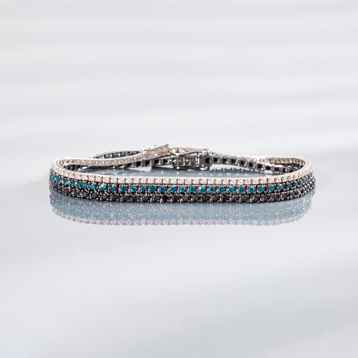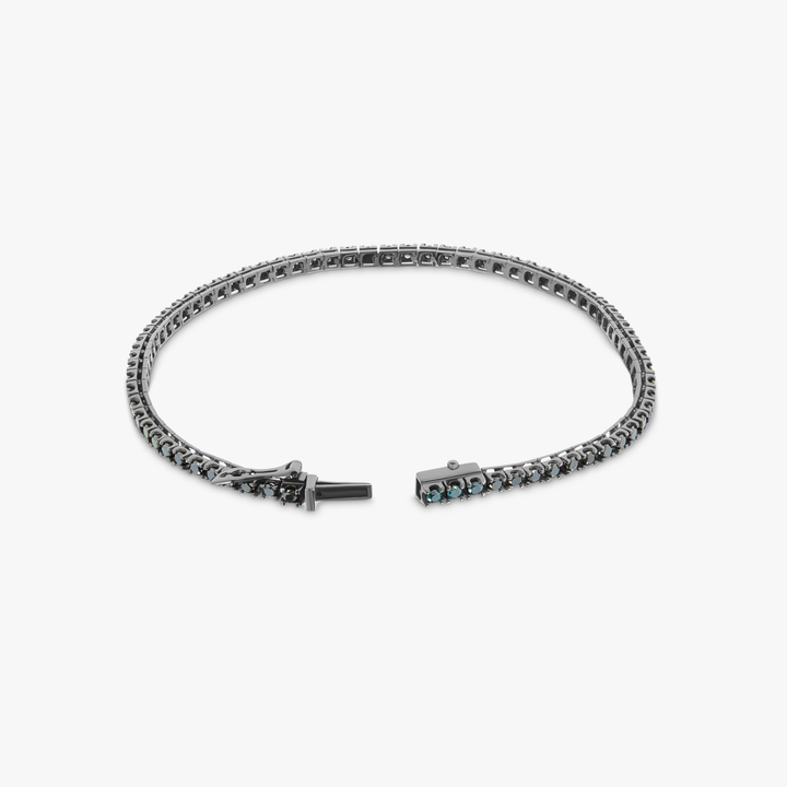 Tennis Bracelet in Black Rhodium Plated 18K White Gold with Black and Blue Diamonds