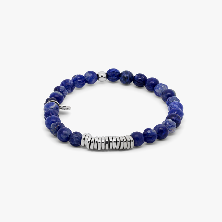 Classic Discs Beaded Bracelet In Rhodium Plated Silver With Blue Sodalite