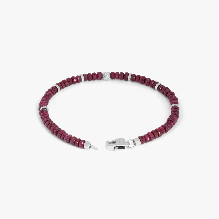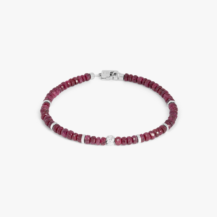 Nodo Beaded Bracelet In Rhodium Plated Silver With Ruby