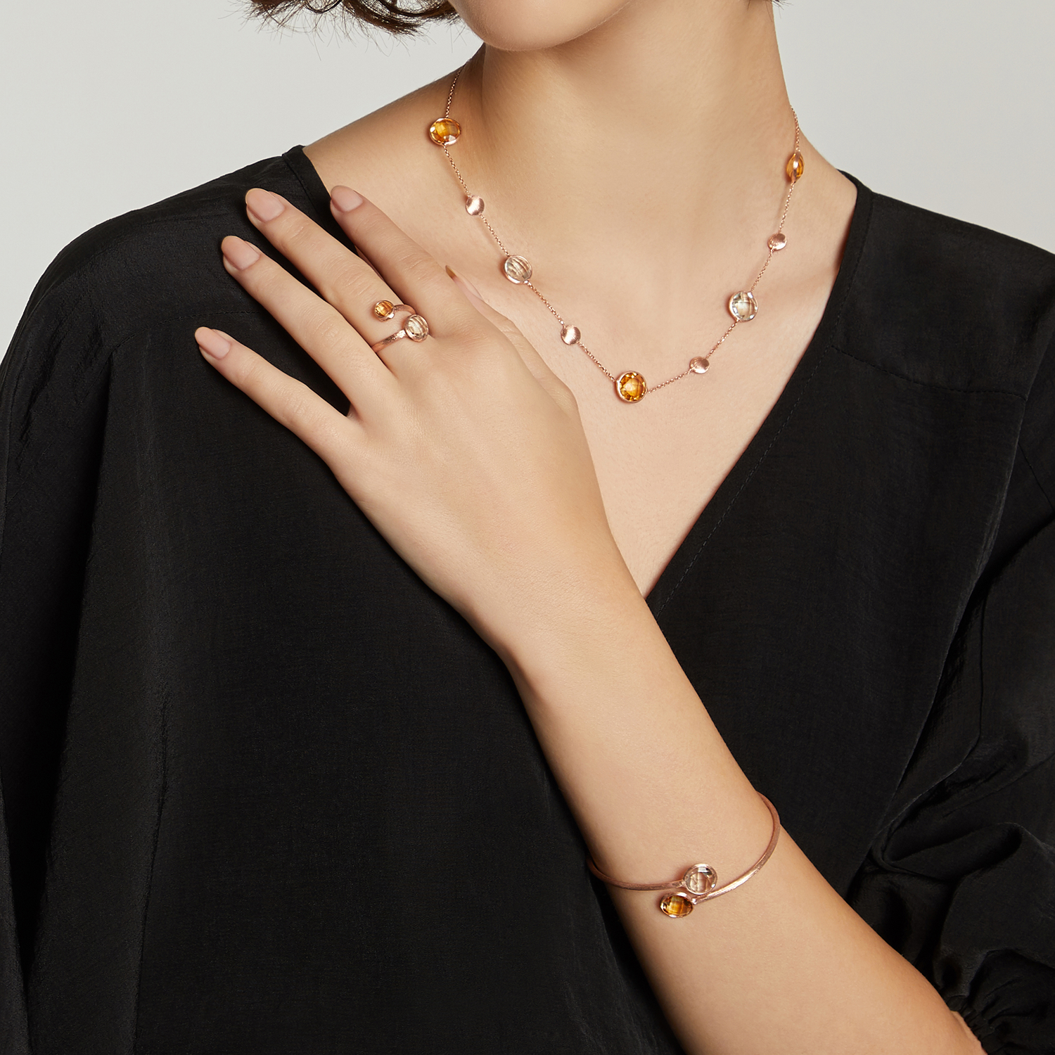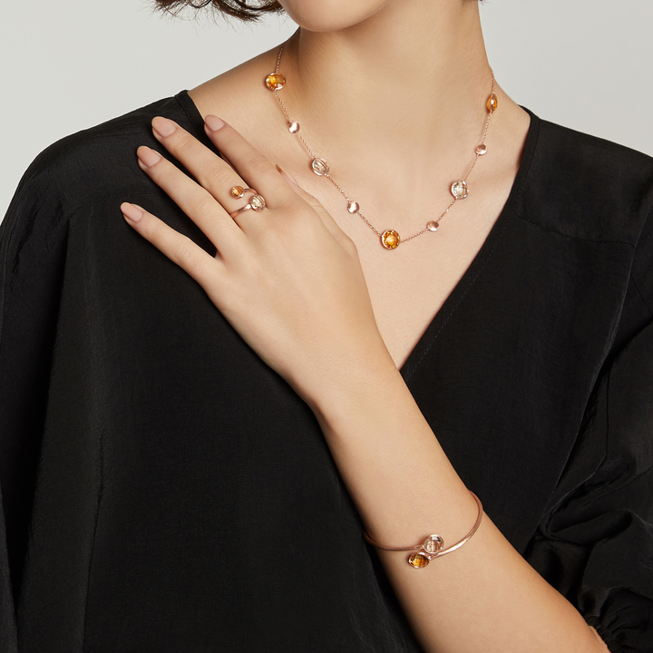 Kensington Bangle In 14K Satin Rose Gold with Garnet and Prasiolite
