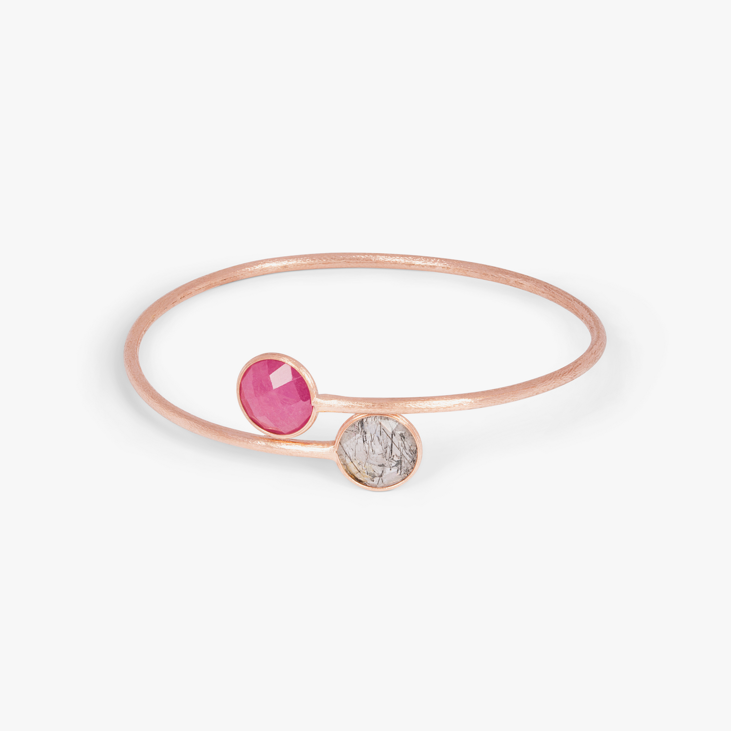 Kensington Bangle In 14K Satin Rose Gold with Black Rutilated Quartz and Ruby Root