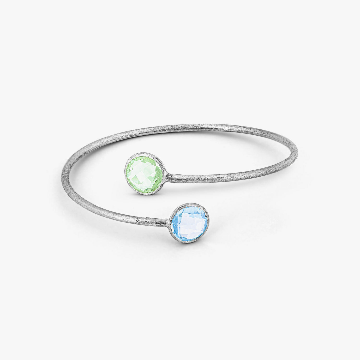 Kensington Bangle in 9K Satin White Gold with Topaz and Green Amethyst
