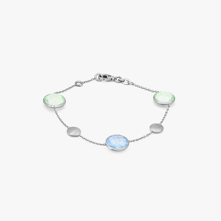 Kensington Bracelet in 9K Satin White Gold with Topaz and Green Amethyst