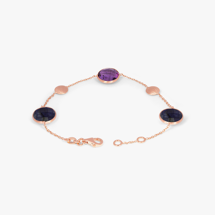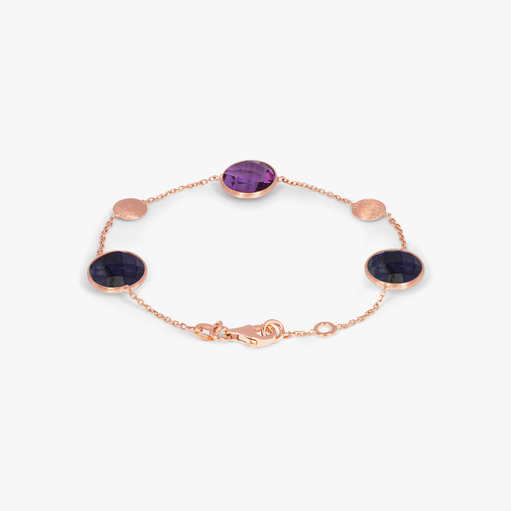 Kensington Bracelet in 14k Satin Rose Gold with Sapphire and Amethyst