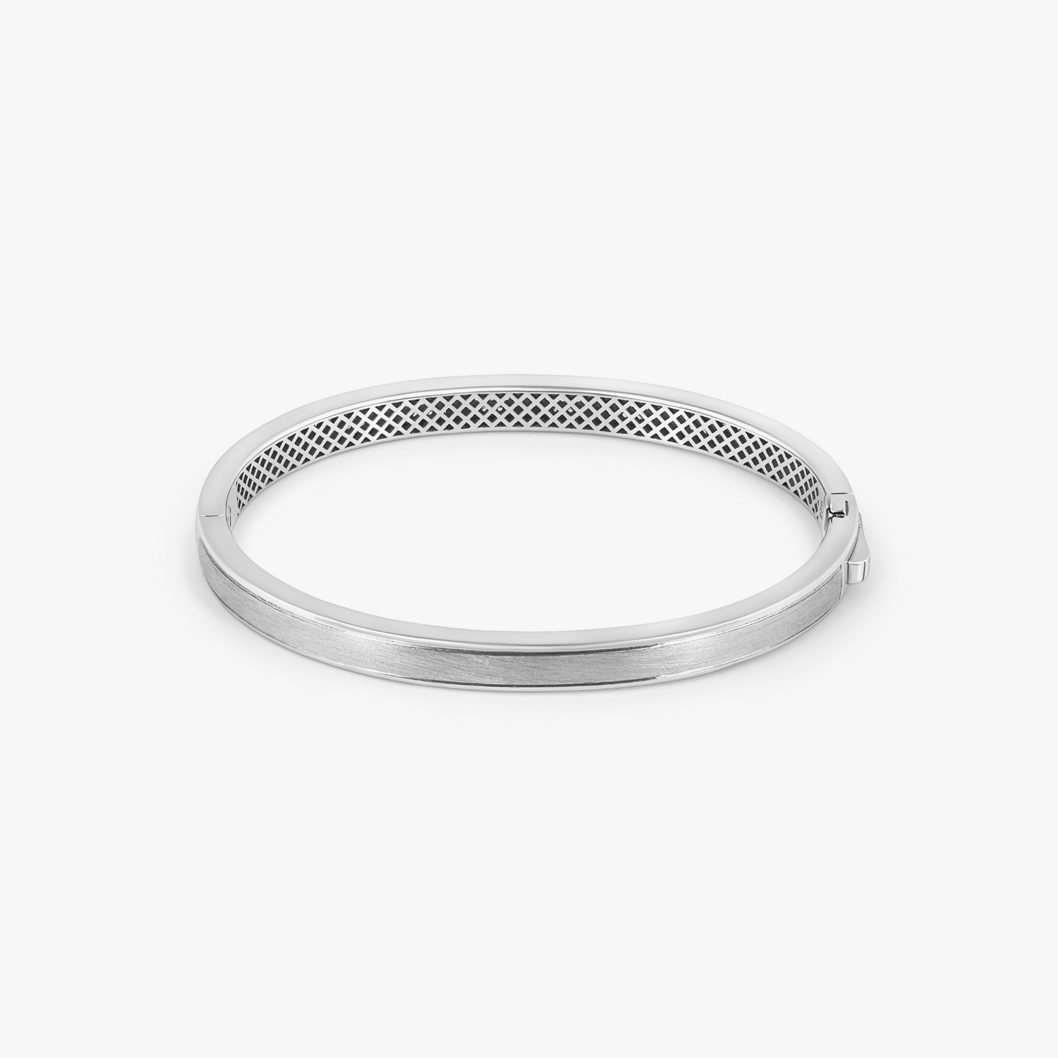 Buckingham Hinge Cuff Bangle in Rhodium Plated Silver with White Diamonds