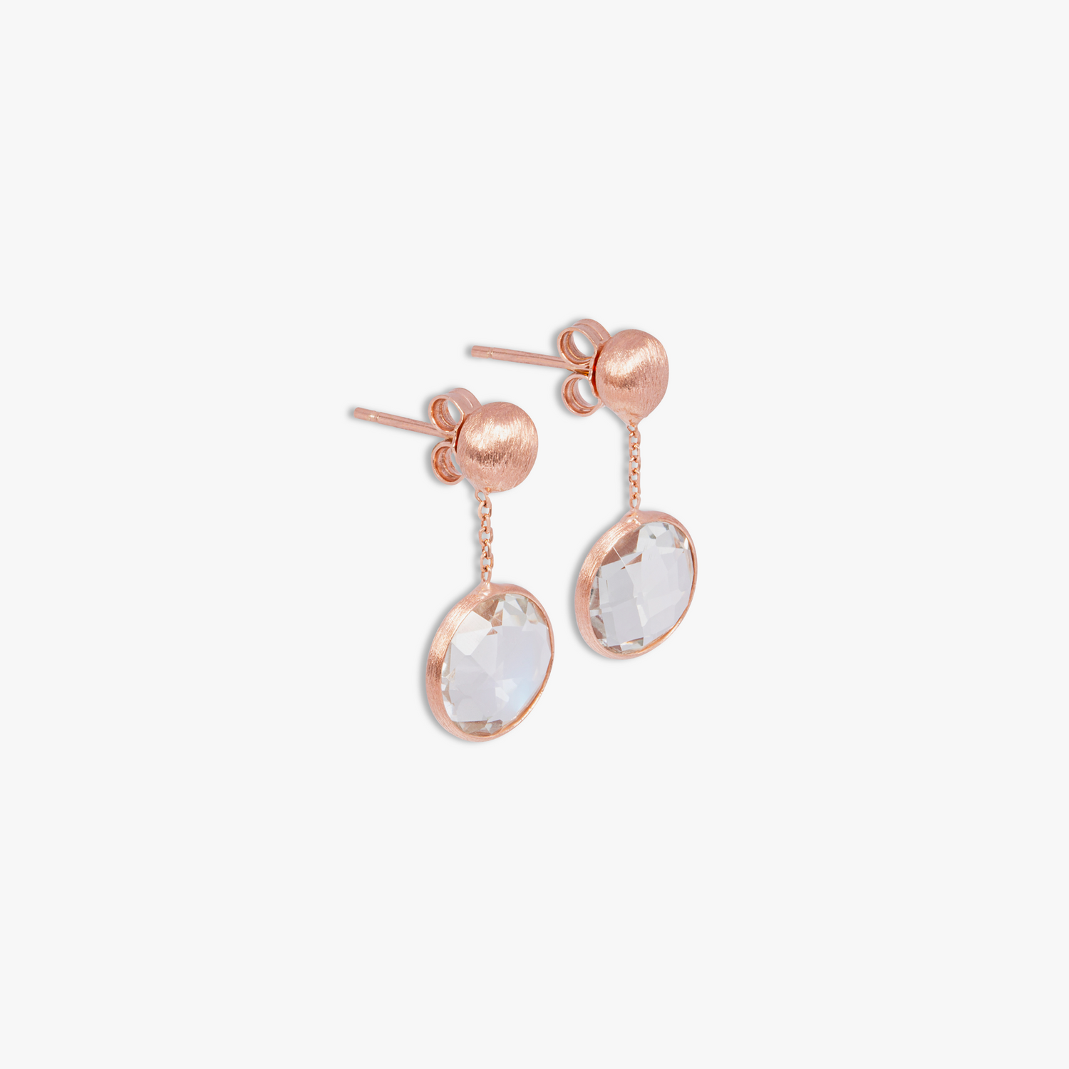 Handcrafted in 14K satin rose gold with faceted prasiolite stones bezel set. Satin finish and classic drop style. Precise artisan craftsmanship.