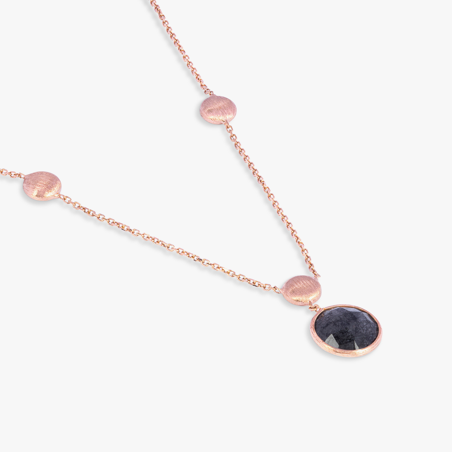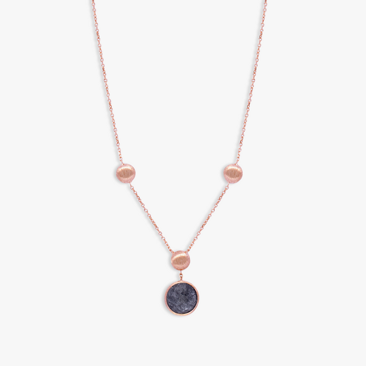 Kensington Necklace In 14K Satin Rose Gold with Black Rutilated Quartz