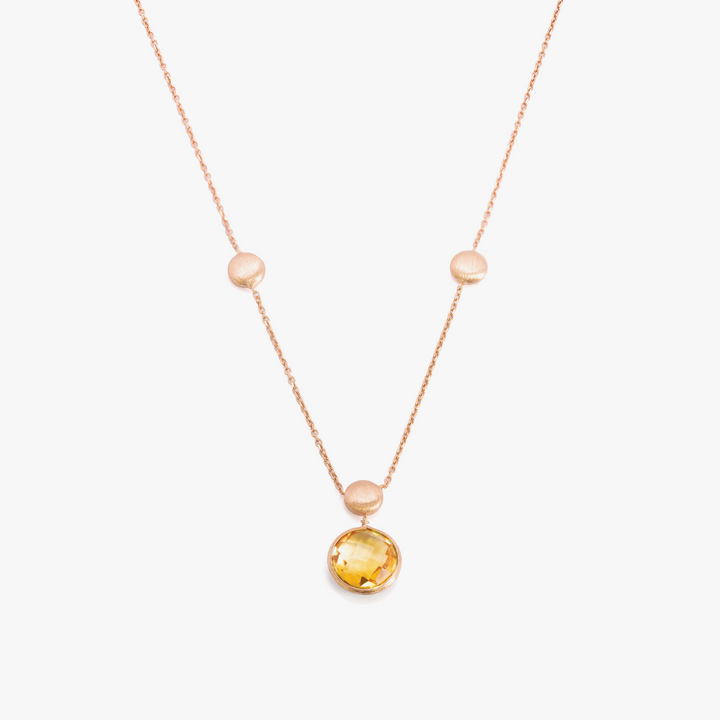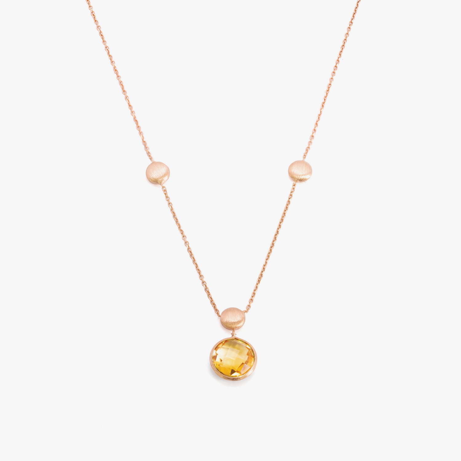 Made of 14K satin-finished rose gold with bezel-set faceted citrine stone. Finished with lobster clasp. Adjustable length.