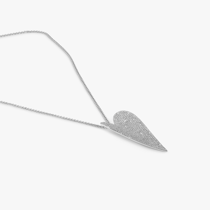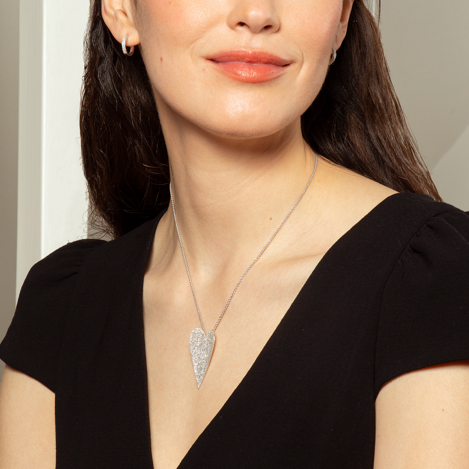 This Cuore Necklace by Tateossian offers a contemporary twist on the timeless heart motif. Crafted in sterling silver, the pendant is delicately angled and encrusted with 576 single-cut white diamonds of HI color and I1 clarity, totaling approximately 1.809 carats. The pave setting creates a sparkling surface that captures light from every angle, symbolizing love, devotion, and modern elegance. Each pendant carries the Tateossian brand signature discreetly engraved on the reverse, underscoring the necklace’s artisanal heritage. Perfect for layering or as a standout piece.