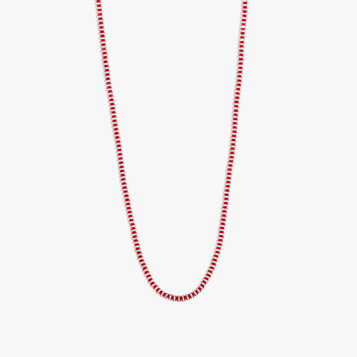 Crafted with sterling silver and red galvanic-plated faceted beads. Button clasp engraved with Tateossian logo. Necklace length: 43 cm. Lightweight and comfortable.