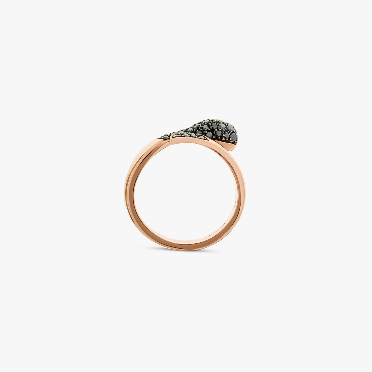 Crafted from 18K rose gold featuring single-cut black diamonds totaling approximately 0.45 cts. Ring design inspired by a snake motif for a unique look.