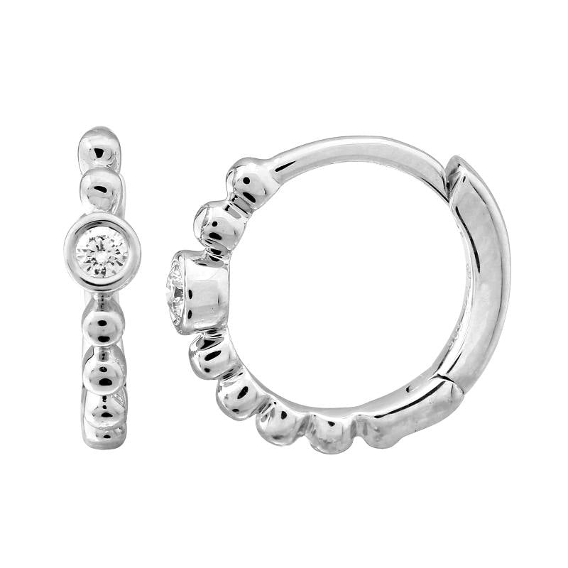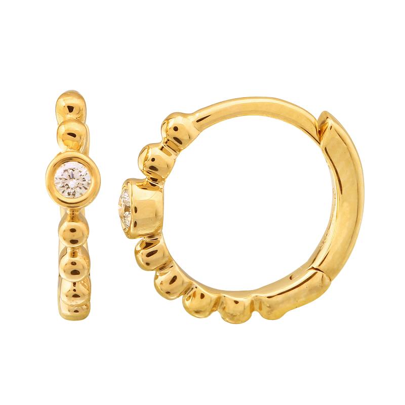 Handcrafted in 14KT yellow gold, featuring 0.04 carats of diamonds. The hoop measures 10mm in diameter and weighs 0.99 grams. Sold as a single piece.