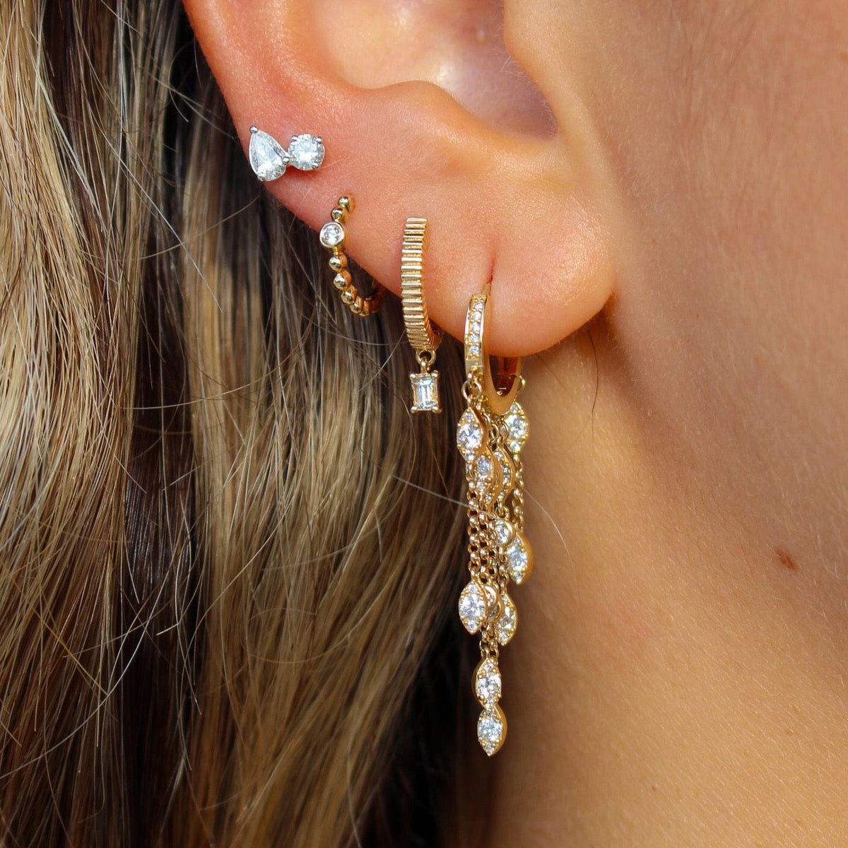 This Gold Ball Bezel Diamond Hoop Earring by Monisha Melwani blends modern minimalism with a hint of luxury. The small hoop design features a single bezel-set diamond, creating a perfect balance between simplicity and sophistication. Ideal for everyday wear, this earring adds a subtle sparkle to any outfit.