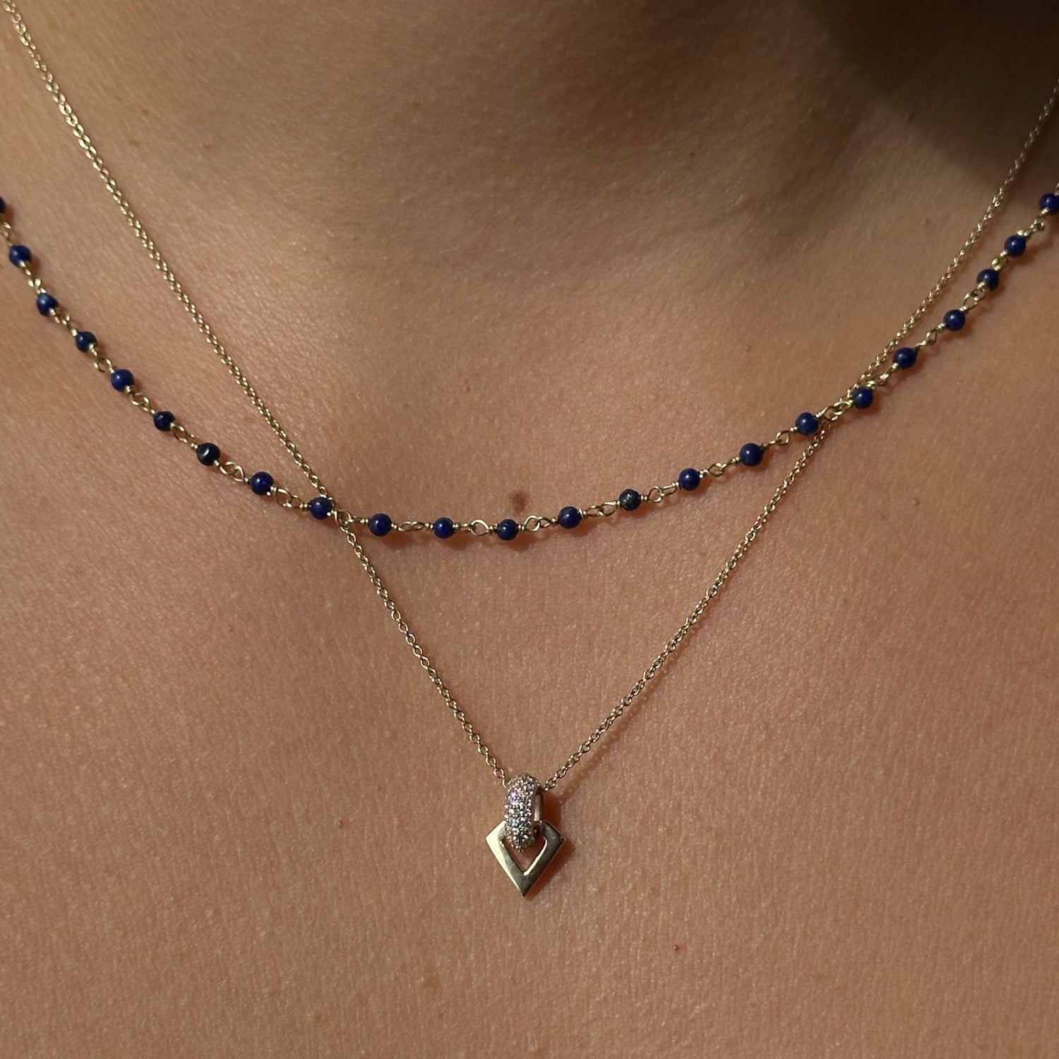 Handcrafted in 14KT yellow gold, featuring blue lapis. The necklace is available in 16- and 17-inch lengths.