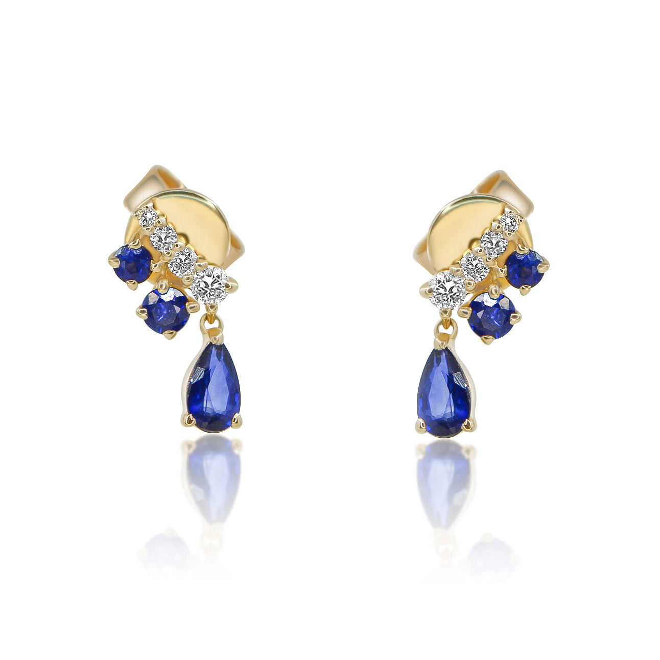 Gold Blue Sapphire Pear and Diamond Bar Earring