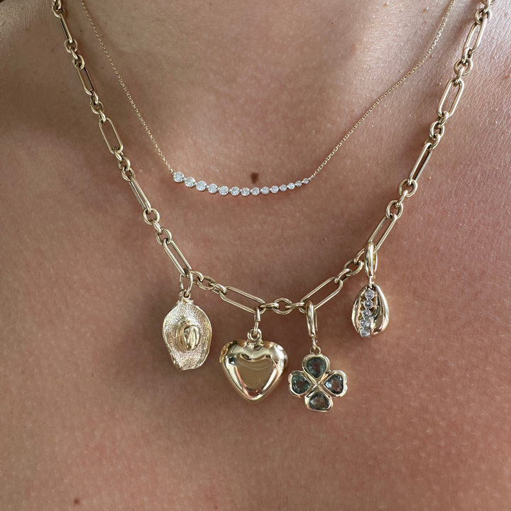 This Gold Cowboy Hat Charm by Monisha Melwani adds a fun and playful element to your jewelry collection. Perfect for lovers of Western-inspired style, this charm makes a great addition to a bracelet or necklace, offering a whimsical touch of charm and personality.