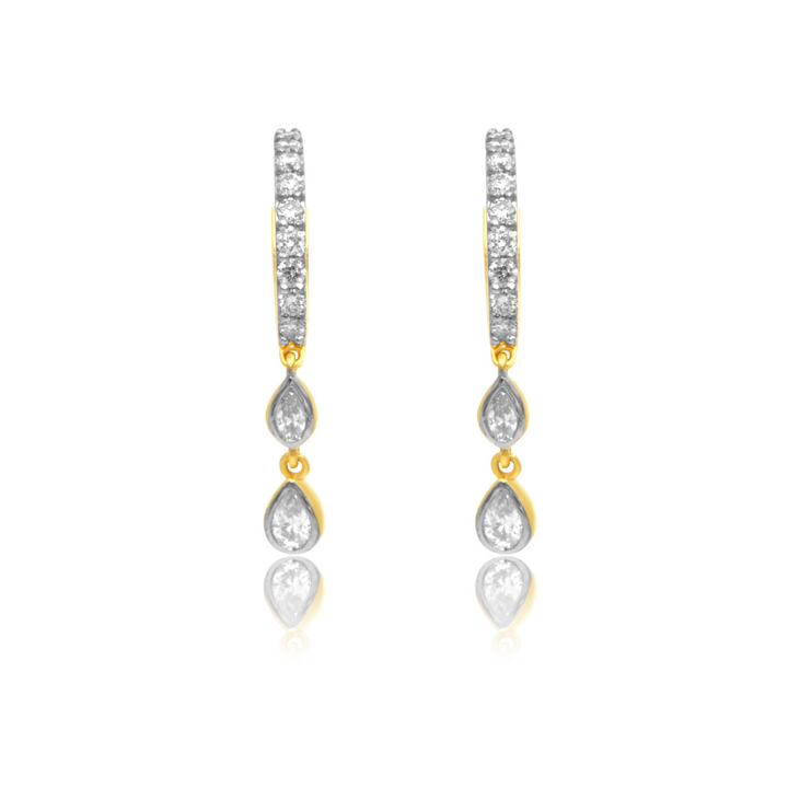 Gold Diamond Double Pear Bezel Drop Hoop Earring