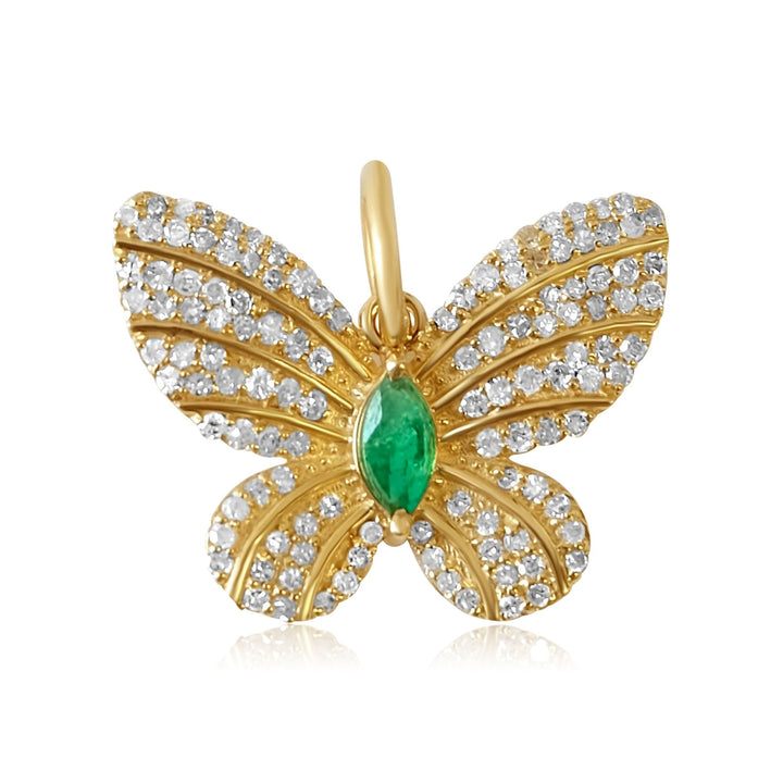 Gold Diamond Emerald Marquise Butterfly Pendant